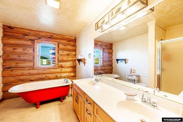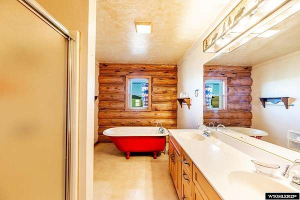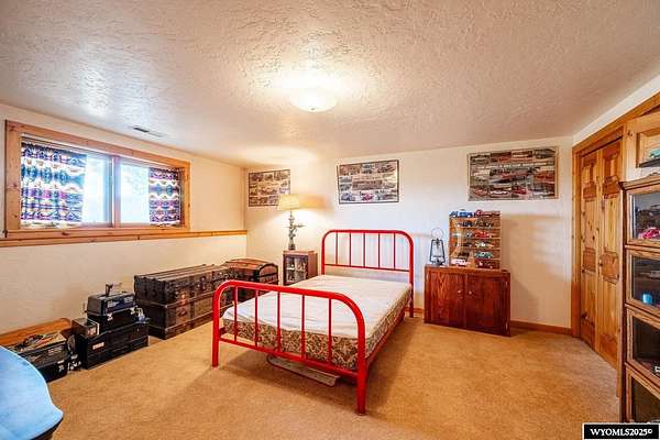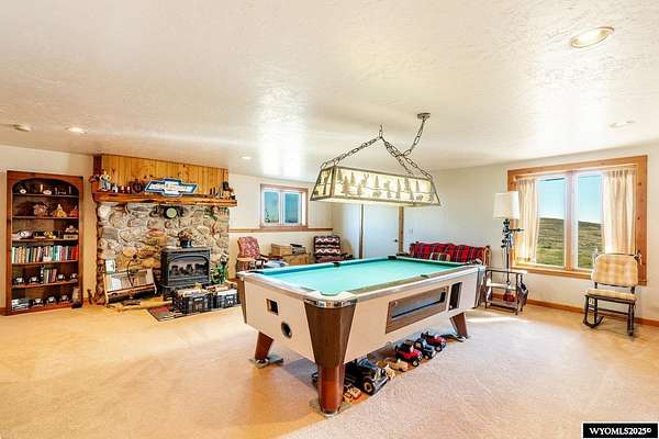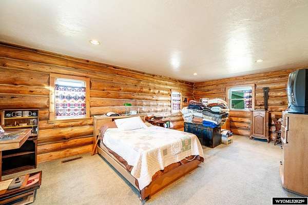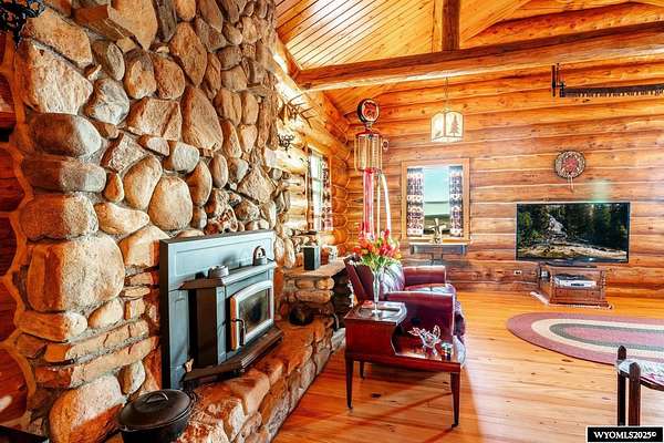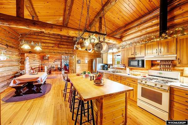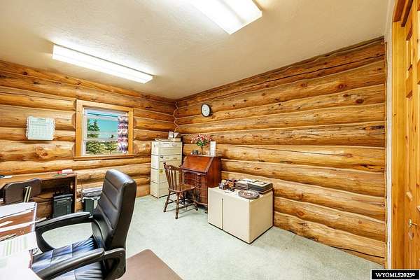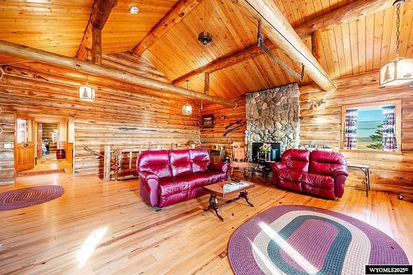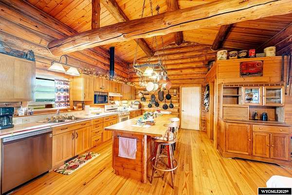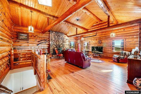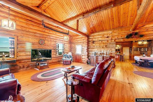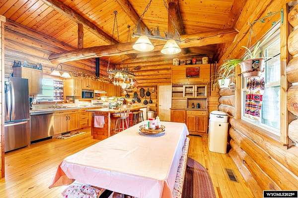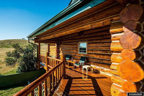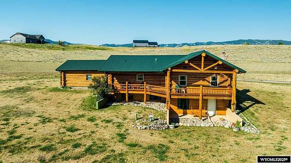 Est $4,194/moCustom log home constructed by renowned builder! This home is a true Wyoming masterpiece and has been immaculately maintained. Enjoy over 3,000 s.f of finished living space with a walkout basement. You can enjoy the outdoors from a large covered deck or lower patio and admire the attractive landscaping. The property also includes a 2400 s.f. insulated and heated shop to accommodate storage for toys, tools and all your shop projects. Plus, you have 15 acres for your animals or just room to roam. This location and the unique property features make this a rare opportunity! Make this your own!