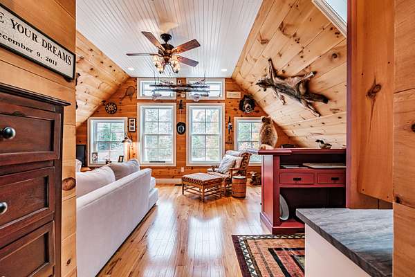 22 LOMBARDO DRIVE in the Moose Run Subdivision is the one you've been looking for! Ideally located within a 5 minute drive to Pleasant Mountain, Highland Lake, downtown Bridgton and Long Lake, this turnkey, year round 2 bedroom, 1 bath contemporary barn was built by a custom builder for his own family with fun, efficiency and low maintenance in mind. Oversized garage with 18' ceiling height and parking for 4 provides room for all your toys. Living space is on the 2nd floor and features warm wood floors, skylights, eat in kitchen, spacious trex deck, central A/C. Abutting the snowmobile trails for immediate access to hundreds of miles of protected trails & winter riding. Bridgton is a thriving small town with shops, restaurants and year round outdoor activities minutes away. 30 min to North Conway, NH and 1 hour to Portland. Property values and demand continue to rise in Bridgton - don't miss out!