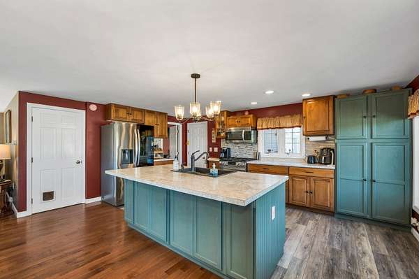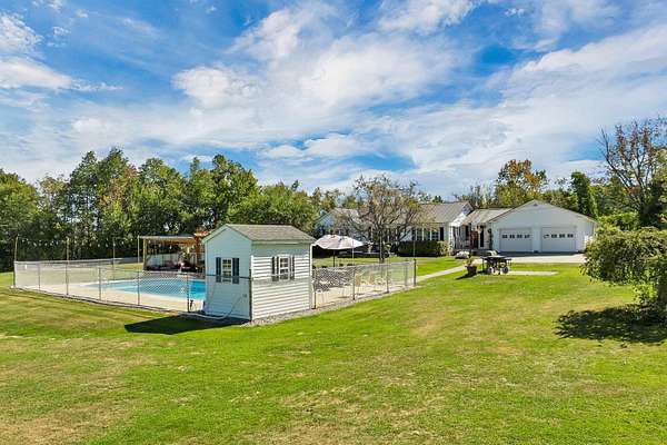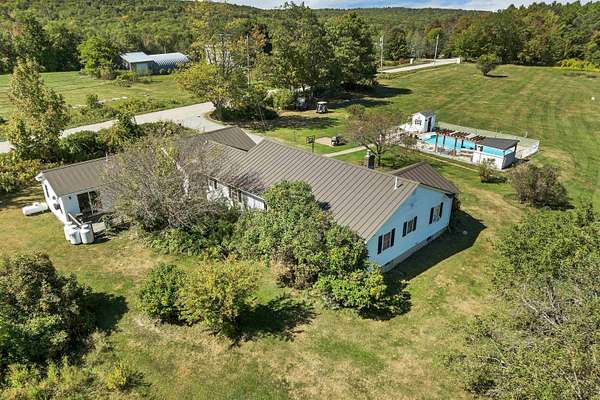 Love to golf, or enjoy taking a swim? Here at 22 N. Town Farm Road, you can do both! Known as East Oxford Highlands Country Club to locals, this single family ranch offers the best of home living and vacation, all in one! Starting in the main house, enjoy the abundant natural light that shines throughout the open-concept living area. The kitchen has been updated with waterproof vinyl plank flooring, an impressive 5-burner gas range, modern touchscreen refrigerator, tile backsplash, and an eat-in island. Hardwood floors flow between the living and dining area, plus step out the new sliding door to the patio, currently set up with a hot tub, and the front yard. Just off the mudroom is the primary suite, with a private bathroom and a walk-in closet. The other two bedrooms, plus a full bath and the stacked washer/dryer are located on the other side of the house. Heading down to the finished basement, kick back and relax with a game of pool or darts, all while watching the game or enjoying family movie night. Around the back of the home is the in-law apartment, a charming one bedroom, one-bath space with a deck that looks out to the pond in the backyard. A whopping 7 acres, this property is home to a personal 9-hole golf course, and an impressive fenced saltwater in-ground pool complete with a cabana and bar area! For the outdoor enthusiasts who love a toy with a motor, the ATV and snowmobile (ITS89) trail systems abut this property. Part of the MSAD#17 school district.