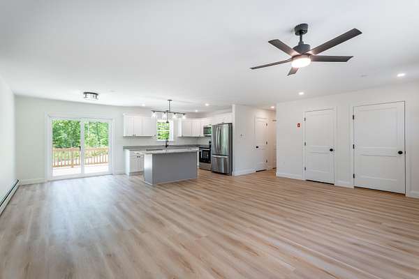 New Construction - Quality Built Ranch - Ready Mid-May - Beautifully constructed 3-bedroom, 2-bath ranch offering 1,544 square feet of thoughtfully designed living space and an attached 2-car garage. Step inside to an open-concept floor plan that creates a bright, airy, and inviting atmosphere. The modern kitchen features granite countertops, stainless steel appliances, and rich cabinetry, seamlessly flowing into the spacious living area. Sliding doors lead to a private deck--perfect for relaxing or entertaining while overlooking the backyard. Designed for both comfort and convenience, this home offers first-floor laundry and a full guest bath. The private primary suite includes a walk-in closet and an en-suite bath complete with a double vanity and granite countertops. Enjoy the ease of 1 floor living! Call/Text Amanda Gervais at 207-615-3269