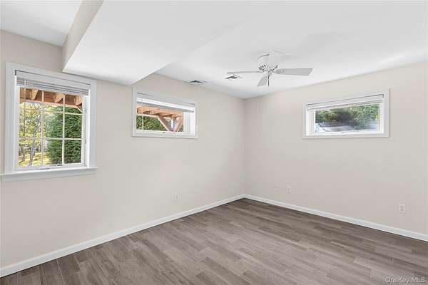 Welcome to 22 Old Trail Road, a charming beach cottage-style residence of 4 bedrooms plus den and 3.5 baths. It is tucked away in the tranquil town of Water Mill, NY. This home is a captivating blend of comfort and elegance, nestled on a generous 2-acre private lot. As you step into the foyer, the 17-foot high ceiling immediately captures your attention, leading you into a living room adorned with wood burning fireplace and French doors and adjacent den. The open dining room or media room has authentic rustic, shiplap, a cozy fireplace and built-in media center. The wide plank hardwood floors showcase well all styles of decor. There is a guest powder room. The gourmet chef's kitchen, equipped with a breakfast area, is a culinary enthusiast's dream. This space seamlessly opens flows ready to host memorable dinner parties. There is a primary suite, featuring a sizable walk-in closet, bath with soaking tub and balcony and two additional charming bedrooms and full bathroom. The lower level offers 2 rooms and a bedroom, a bathroom, and laundry room. The attached garage provides ample space for your vehicles and storage needs. The outdoor area is brimming with potential, with enough room for a pool and there is currently a sunken hot tub. A two-car barn and workshop present endless possibilities, whether you're an artist seeking a studio, a sports enthusiast needing equipment storage, or an aspiring urban farmer. This meticulously maintained property is ready to welcome its next owner with an already updated Certificate of Occupancy, 40 percent clearing allowed and single and separate zoning allowing for 10 feet setbacks for pool.