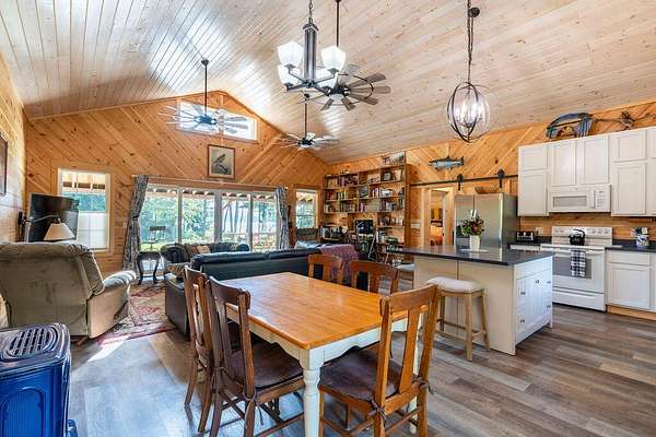 Welcome to your own slice of Maine paradise! Built in 2021, this single-story open-concept home is modern, bright, and designed for easy living. Tucked away on 2.369+/- private acres with a deeded easement to First Davis Pond for your own private use, a shared right of way to Second Davis Pond, you'll love the peace, quiet, and extra room to grow! Inside, there are 2 bedrooms and 2.5 baths, including a dreamy primary suite with an oversized tiled walk-in shower and handy in-suite laundry. Step outside and soak up the viewsaEUR"a big front porch looks out over the pond, while the back deck overlooks a trout-stocked pond just begging for morning coffee or evening sunsets. Cast a line or launch your kayak from your own private dock, then come home to cozy comfort. With an attached heated 2-car garage, extra outbuilding, and tons of storage throughout, you'll have space for all your toys and gear. Whether you're after year-round living or a getaway spot, this 2021 gem offers modern comfort, waterfront fun, and the perfect quiet retreat!