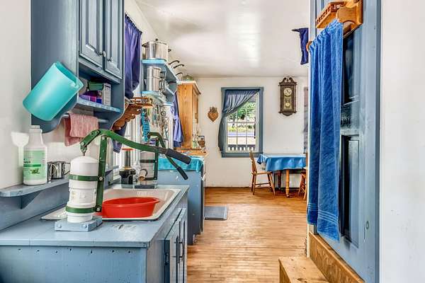 Set on three peaceful acres, this unique Amish-built property offers a simple country lifestyle with room to grow. The three-bedroom home features a spacious kitchen, living room, pantry, and abundant storage throughout, along with a full concrete basement providing additional space and utility. A drilled well with hand pump at the kitchen sink supplies water, with storage located in the basement. Outside, the property shines with fruit trees, open space, and excellent outbuildings. A horse barn with stables makes this an ideal setup for animals, while the large oversized workshop with storage underneath provides ample space for equipment, projects, or hobbies. The home is currently off-grid and was traditionally built without plumbing or electrical systems. However, the structure offers a solid opportunity for a buyer to add modern conveniences such as electrical service and plumbing if desired, while maintaining the charm and simplicity of country living. A rare opportunity for those seeking homesteading potential, hobby farming, or a peaceful rural retreat in midcoast Maine.