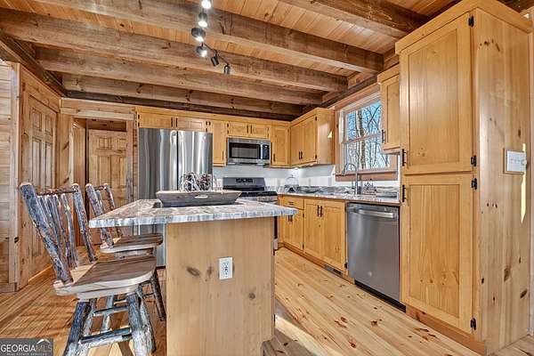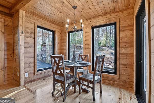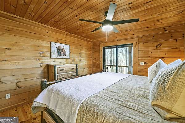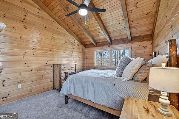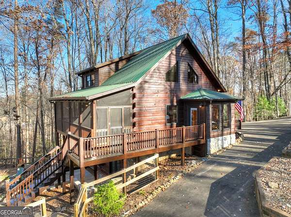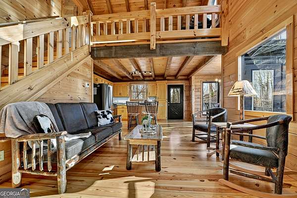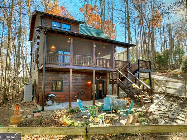 Come experience the SEASONAL, NEARLY 360 NORTH GEORGIA MOUNTAIN VIEWS from this immaculate 3 BR/3 BTH LOG CABIN located off Aska Road & less than 5 MILES TO DOWNTOWN BLUE RIDGE & LAKE BLUE RIDGE. Meticulously maintained & filled w/RECENT UPGRADES, this freshly stained cabin offers PAVED ROADS & DRIVEWAY, AMPLE PARKING, & EASY STEPLESS RAMP ACCESS. Inside, enjoy warm wood interiors, an open layout w/a NEW BREAKFAST AREA ADDITION, a cozy living room w/GAS LOG ROCK FIREPLACE & VAULTED BEAMED CEILINGS, & a beautifully updated kitchen featuring NEW CUSTOM CABINETS W/PULL-OUT STORAGE, NEW WINDOWS, STAINLESS APPLIANCES, GAS RANGE, GRANITE COUNTERS, REFINISHED WOOD FLOORS, & ALL-NEW LIGHTING. Step out to the WRAP-AROUND DECK from the living or breakfast area to savor the fresh air & SEASONAL MOUNTAIN VIEWS. The main-level bedroom opens to a covered porch, while the large main bath offers NEW GRANITE COUNTERS, shower, WALK-IN CLOSET, & laundry room. Upstairs, find a spacious loft & a bedroom w/VAULTED & BEAMED CEILINGS, LARGE WALK-IN CLOSET, & ensuite bath w/TILE SHOWER & GRANITE VANITY. The fully finished basement boasts NEW MEMORY-FOAM CARPET, a large living area, game space, WET BAR, & addition ensuite bedroom. Walk out to a covered patio overlooking the FENCED YARD, STONE WALKWAY, & FIREPIT AREA. Equipped with NEW GUTTERS, NEW INSULATION, UPGRADED ELECTRICAL, & optional HAND MADE & HIGH-END FURNISHINGS from Amish Home Furniture in Ellijay available for purchase, this home is perfect as a MOUNTAIN SANCTUARY escape or a VACATION RENTAL. A section of the property across the road offers flexible use, including space to park a camper/RV. Enjoy being just minutes from the ASKA ADVENTURE AREA-offering HIKING, BIKING, TUBING, KAYAKING, & endless outdoor recreation along the SCENIC TOCCOA RIVER-while also being close to DOWNTOWN BLUE RIDGE w/its charming shops, AWARD-WINNING RESTAURANTS, breweries, vibrant arts scene, & the BLUE RIDGE SCENIC RAILWAY. THIS HOME HAS IT ALL!