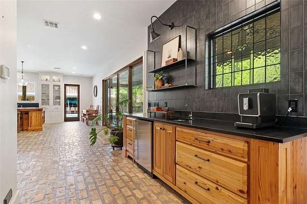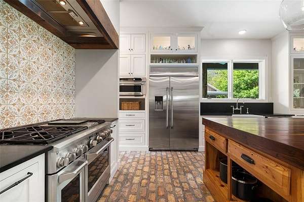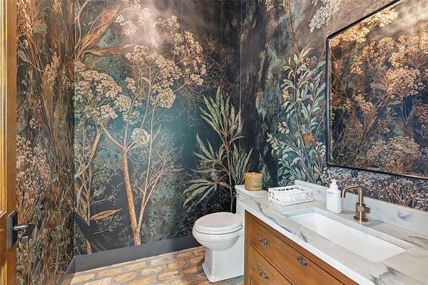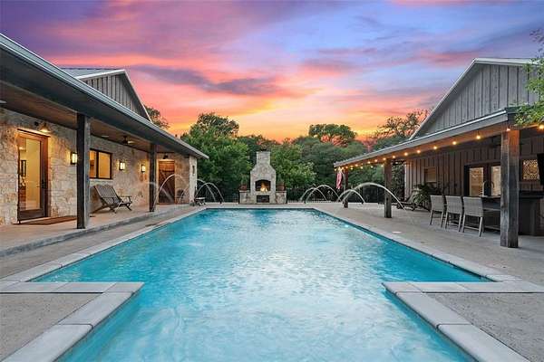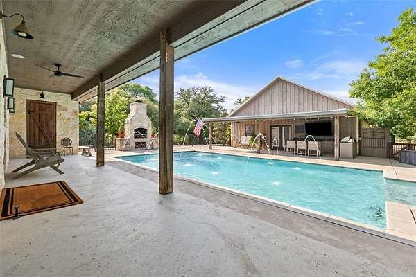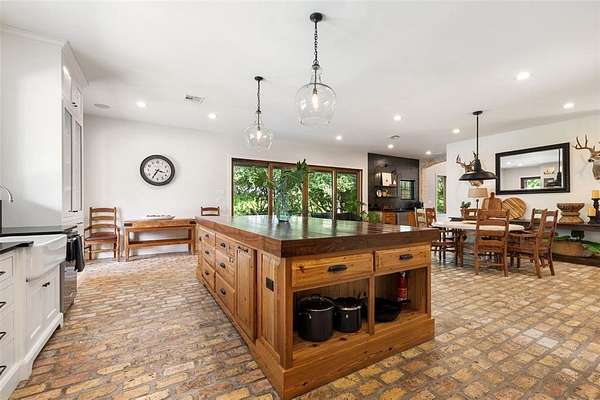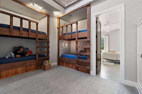Outdoors, the estate continues to impress with beautiful patios, resort-style poolside living, and serene views over the trees and creek below. A custom bunk room adds a playful and memorable guest feature, while the overall home remains grounded in timeless design, privacy, and a sense of retreat that is increasingly difficult to find.