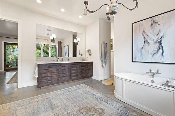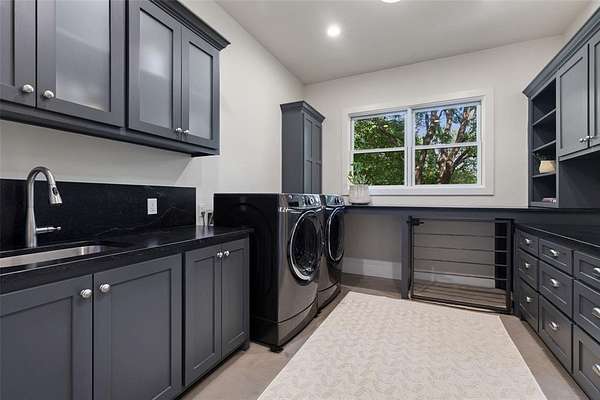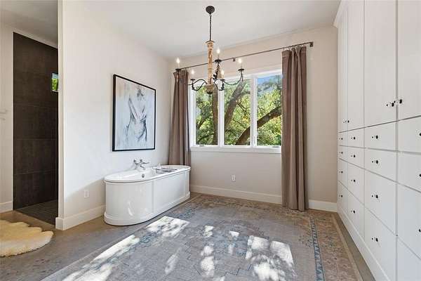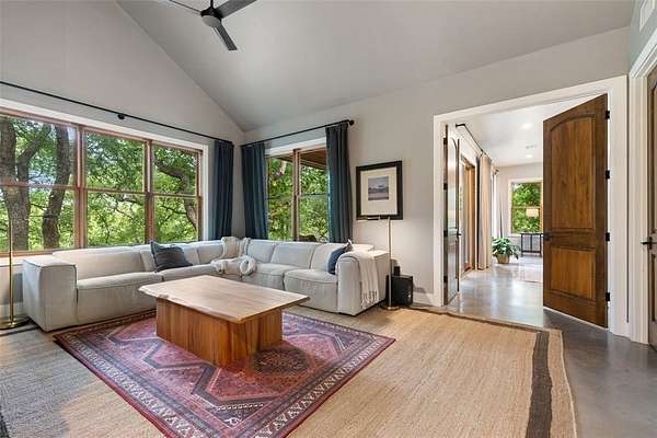 Perched above a peaceful creek and surrounded by wooded views, the home captures the rare feeling of living among the trees while still enjoying the refinement of a luxury estate. Expansive windows draw natural light into the interiors and frame the surrounding landscape, allowing the beauty of the property to become part of the home itself.