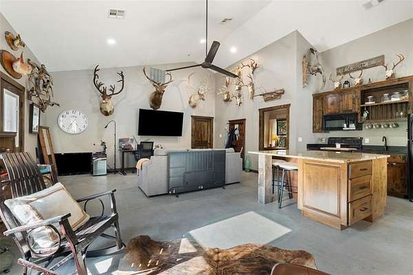 - Built-In Features, Cathedral Ceiling(s), Decorative Lighting, Eat-In Kitchen, Granite Counters, High Speed Internet Available, Kitchen Island, Loft, Natural Woodwork, Pantry, Sound System Wiring, Vaulted Ceiling(s), Walk-In Closet(s), Wet Bar