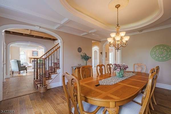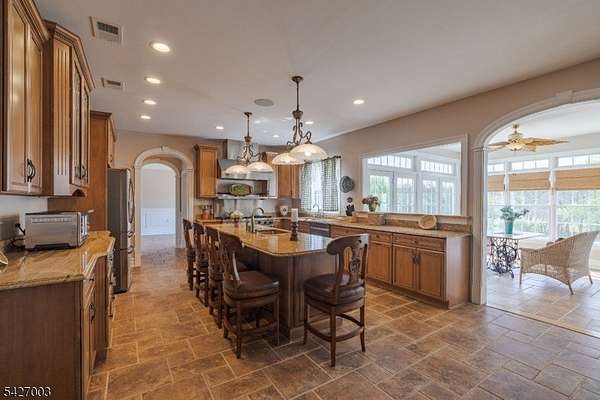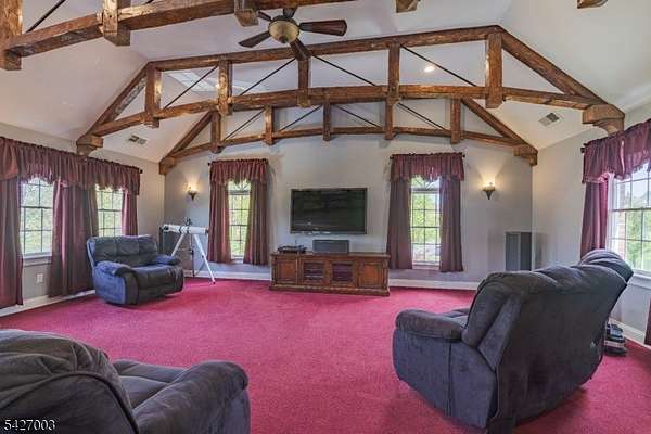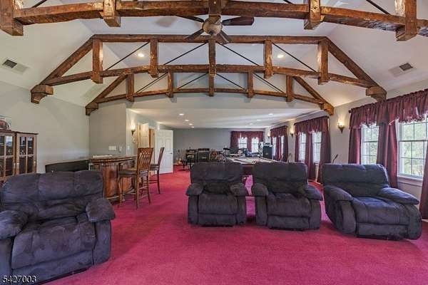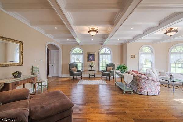 Welcome to this beautifully designed 2-story home located in a Blue-Ribbon school district in Montgomery Twp NJ, minutes from shopping and downtown Princeton. Built in 2007, the 6843 sqft home sits on a quiet cul-de-sac on six acres. A grand 2 story foyer welcomes you with a soaring 23 ft beamed ceiling which sets the tone for the spacious 1st floor, offering abundant living & entertaining spaces. The extra-large kitchen serves as the heart of the home, featuring granite countertops, an oversized island, and eat in kitchen with an additional staircase. Just off the kitchen are two walk-in pantries, a sunroom/breakfast room leading out to a full stone patio, a butler's pantry, and a large 1st-floor laundry/craft room. You'll also find a home office/5th bedroom, a full bath, large sunken family room with a tray ceiling and fireplace, and a formal dining room. Upstairs, you'll find the Primary Suite with a sitting area and fireplace, 2 Junior Suites with full bathsand walk in closets & an additional bedroom, offering ample space and tons of storage. For entertaining there is a 1100 sq ft great room with beamed cathedral ceilings. Additional highlights include a 4-car garage, large driveway, extensive custom moldings, paneling and quality finishes throughout. The unfinished walkout 3500 sqft basement provides generous storage & possibilities for future expansion. It's the perfect home for large gatherings. Don't miss this exceptional opportunity in a prime Montgomery location!