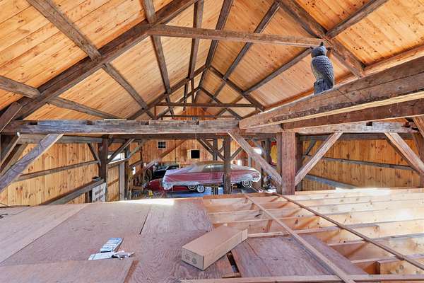 Auto Enthusiast's Dream Property! Close to the Lakes Region, Mountains and Seacost, this 4.45 acre property is ideal for the car-collector, or restoration enthusiast. Walk into the expansive 100'x33' reconstructed, 2 story post and beam barn and imagine your vehicles housed in the large, airy space. The concrete floors are piped with radiant heat tubing that extends into the exterior aprons, the structure is insulated and wired. Vehicle lift will convey with the property! Second story is central to the barn and could make a great office, storage space or a hideaway. Above is a beautiful cupola that provides 360 degree views of the area. Solid metal roof throughout! There are 5 barn doors, with one set forming a pass-through from front to rear of the structure. Door at end of barn is approximately dock-height to the outside for ease of loading and unloading a truck or flatbed. Space to garage 12+ cars comfortably with plenty of room left over to work on projects! Connected to an unfinished (stripped mostly to the studs) 2 story house with full attic and basement. Bring your rehab ideas or remove house and replace it with new construction or pre-fab. concrete foundation is solid and substantial! Metal roof, foundation and septic were new when current owner purchased in 2012. A 24 hour notice for showings. All showings must be assisted.