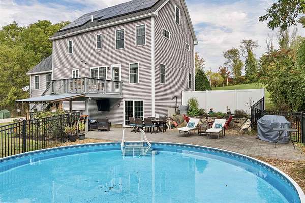 Set back from the road on a private 7-acre lot, 22 Stratham Heights Road combines the privacy you crave with the fresh, inviting feel of a 2014-built home. Inside, the home offers comfortable, flexible living spaces and plenty of room for outdoor activities. The yard features a patio, an above-ground pool, and plenty of open space, perfect for gardening, play, and even a putting green. Inside, hardwood flooring flows throughout the main level, where the layout balances everyday function with traditional charm. The spacious eat-in kitchen includes a large walk-in pantry that can also serve as a home office or flex space. The kitchen opens to a casual living room and a deck overlooking the backyard. A formal living room and dining room provide additional space for gatherings and entertaining. Upstairs, there are three comfortable bedrooms, including a serene primary suite with a full en suite bath and two generous walk-in closets. The unfinished third floor offers excellent potential for expansion, whether for a bonus room, studio, or home gym. With solar panels for added energy efficiency and a prime location close to 101 for commuting, Exeter, and the Seacoast, this property offers both convenience and practicality. Join us for the open houses on Thursday, October 16th at 4:00 - 5:30 PM and Saturday, October 18th at 10:00 - 12:00 PM!