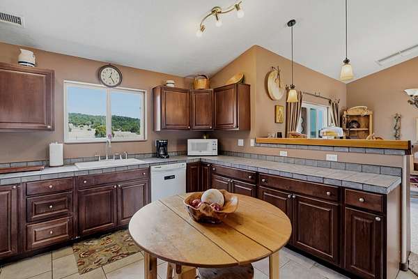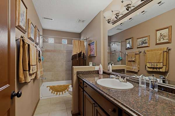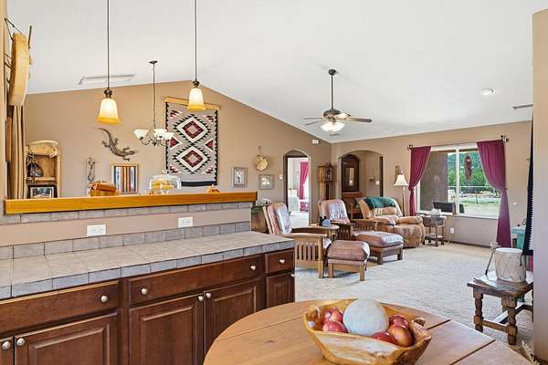 - Breakfast Bar, Ceiling Fans, Country Kitchen, Dual Sinks, Great Room, Living Dining Room, Main Level Primary, Pantry, Tub Shower, Walk In Closets