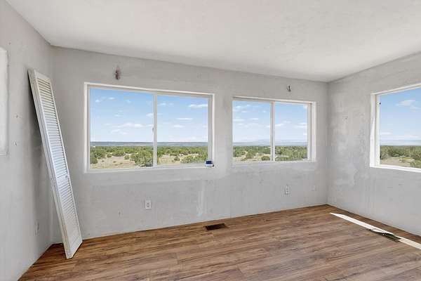 Est $2,477/moHouse and separate studio with great potential, first floor has a comfortable open plan with spacious covered, north facing portal. Second floor has amazing views and a gorgeous deck for those cool summer evenings. Forty acres of stunning high desert with privacy and easy access just off pavement. Great horse country! This home could be paradise for you and your animals!