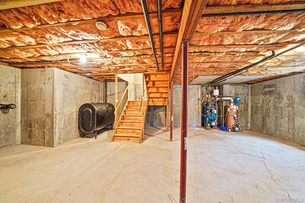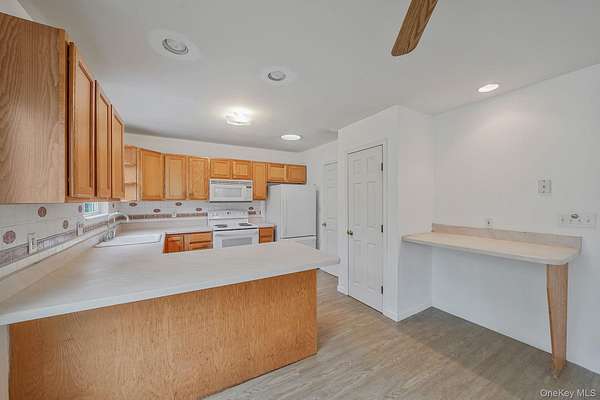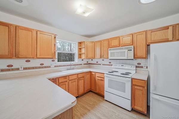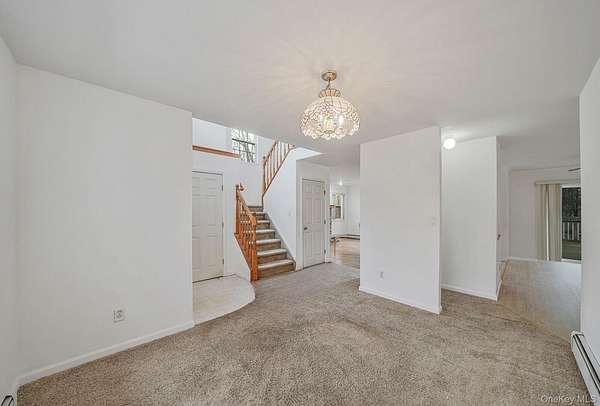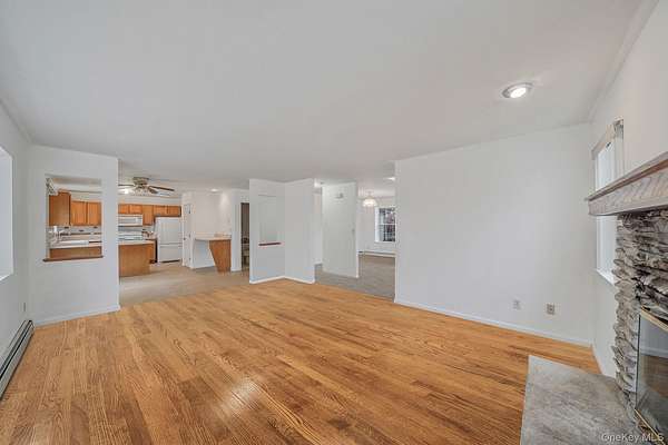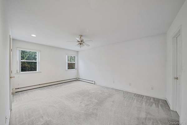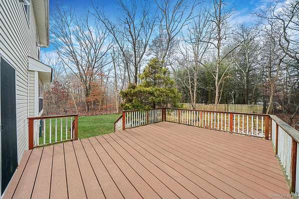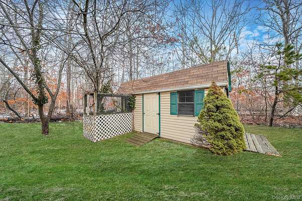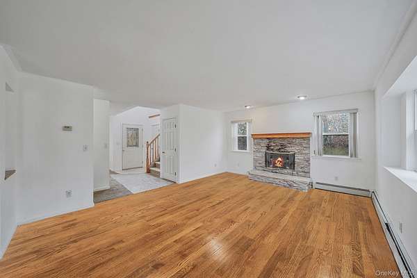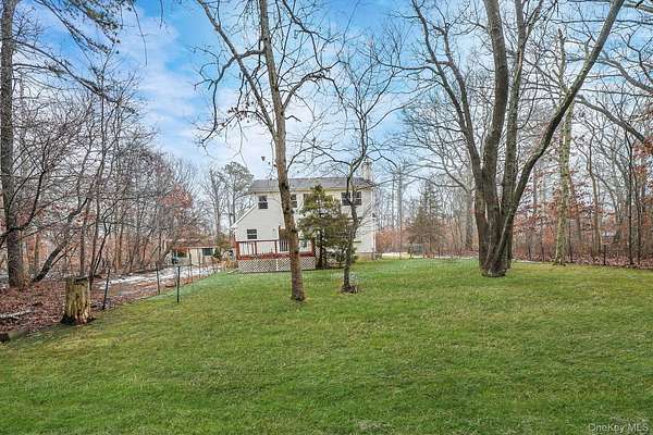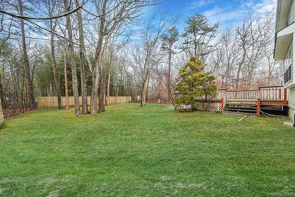 This three bedroom, two and half bath colonial home is tucked away on a private driveway and set on a sprawling 1.5-acre lot in the heart of Manorville within the Eastport South Manor School District. Entryway with vaulted ceilings welcomes you inside, setting the tone for the home's open and inviting feel. The main level features a formal dining room with a ceiling fan and a spacious living room with a wood-burning fireplace, perfect for entertaining with effortless flow. The open-concept kitchen showcases new luxury vinyl plank flooring, newer appliances, and sliding glass doors leading to the deck, perfect for enjoying the peaceful, private property. The main level also includes a half bath and a conveniently placed laundry room just off the kitchen, between the kitchen and two car garage. Upstairs, you will find three generously sized bedrooms, including a sunny primary suite with vaulted ceilings, as well as carpeting and throughout for comfortable, functional living. Additional highlights include an additional detached garage, unfinished full basement, charming granny porch, and a rear deck ideal for outdoor enjoyment. The property offers the potential to be used as horse property, subject to verification with local town ordinances regarding permitted use and requirements. Conveniently located near the Long Island Expressway and Sunrise Highway, this home offers the perfect balance of privacy and accessibility, close to major hospitals, schools, golf clubs, county parks, shopping, and more. Room to grow, gather, and make it truly your own.