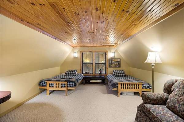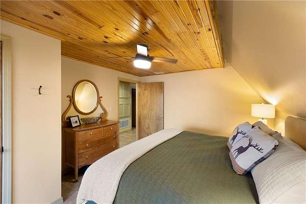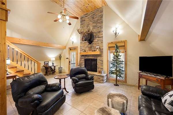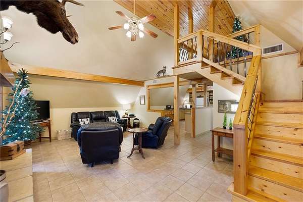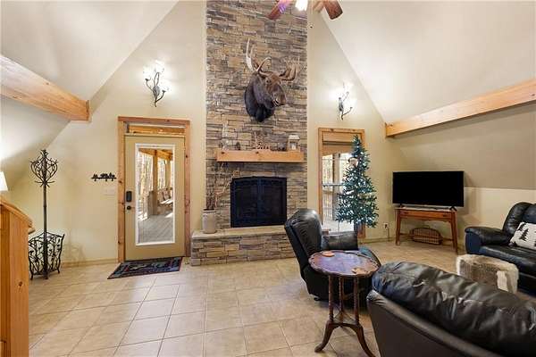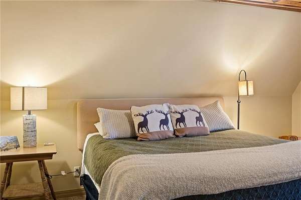 Inside, you’ll find over 1,600 sq ft of comfortable, welcoming space. A gas fireplace anchors the living area, with the signature moose above it adding character and charm. Two spacious bedrooms and an oversized loft provide plenty of room for family, guests, or a relaxing weekend retreat.