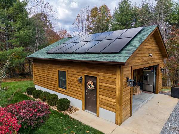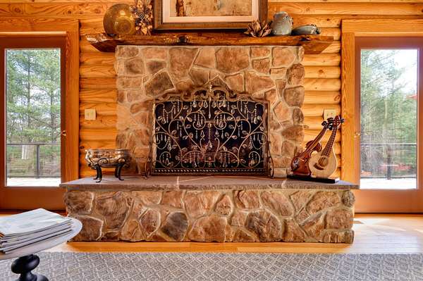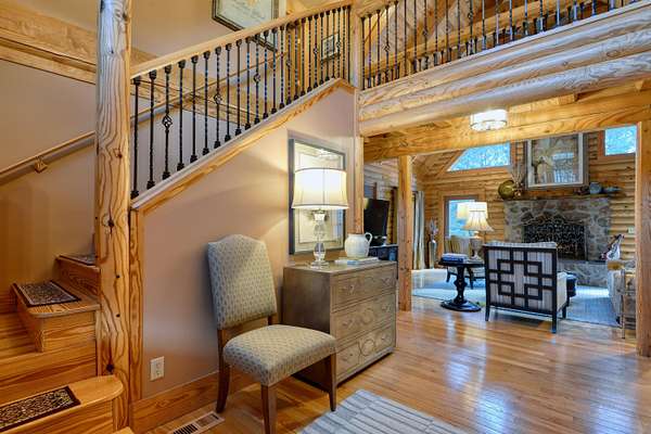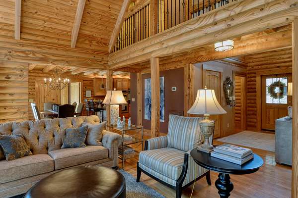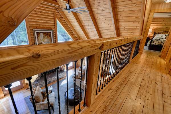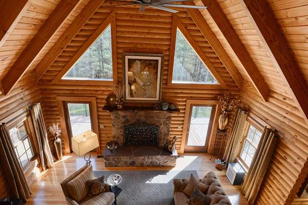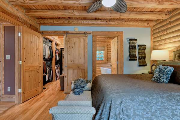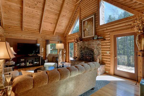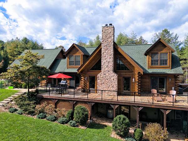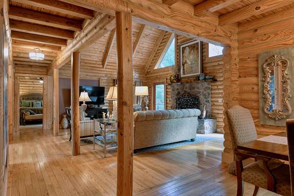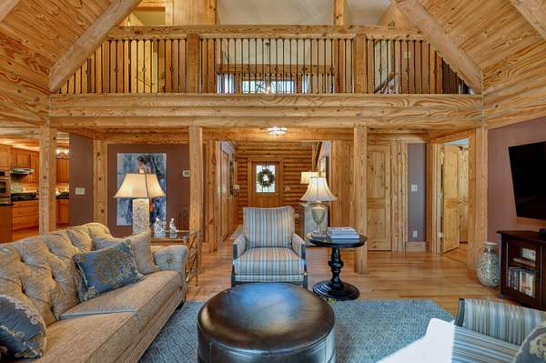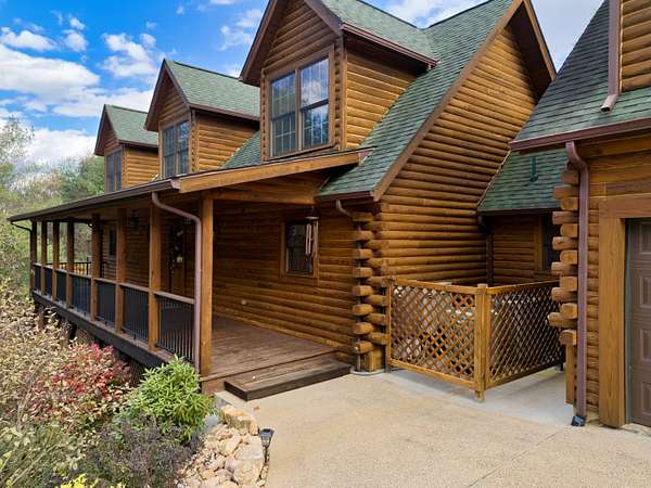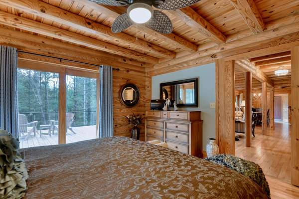 LIVE like you're on VACATION every day in this stunning 4-bedroom, 4-bath log home located just minutes from Town of Floyd! Thismeticulously built home features solid HW floors throughout w/ solid wood interior doors. A dramatic wall of windows fills the living room w/ naturallight, while 12,000 KW off-grid solar system efficiently powers most of home. Solar is located in the new, 2nd detached garage for additional space.The kitchen offers granite countertops, a walk-in pantry w/ breakfast bar. The dining area opens to spacious deck, also accessible from the living room& main-level primary suite w/ luxurious updated primary bathroom! The bonus room over garage includes full bath & separate entrance, perfect for 4th bedroom, guest suite, home office or Airbnb rental. The finished walk-out