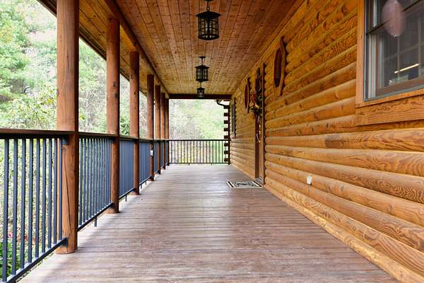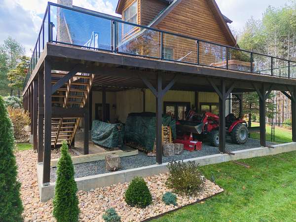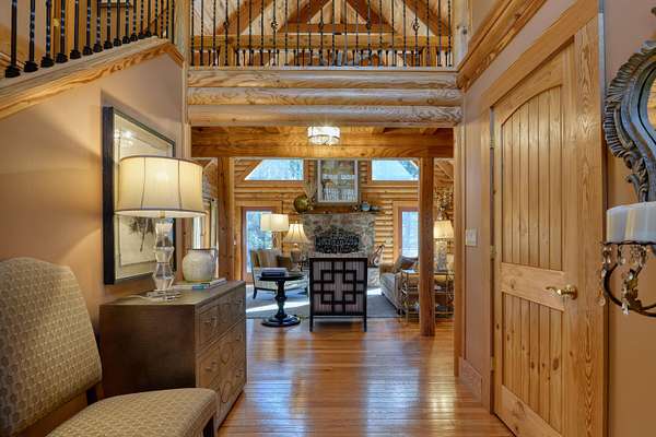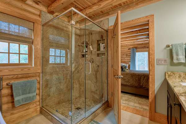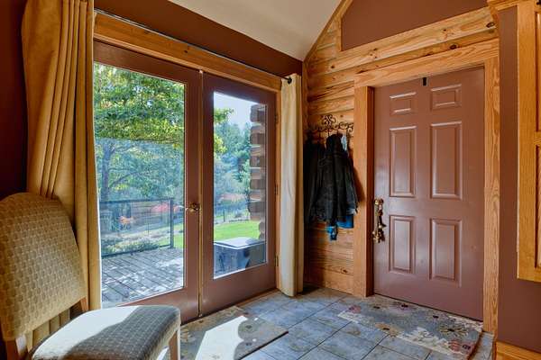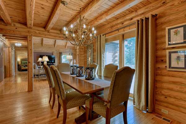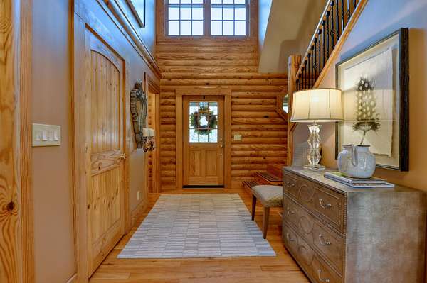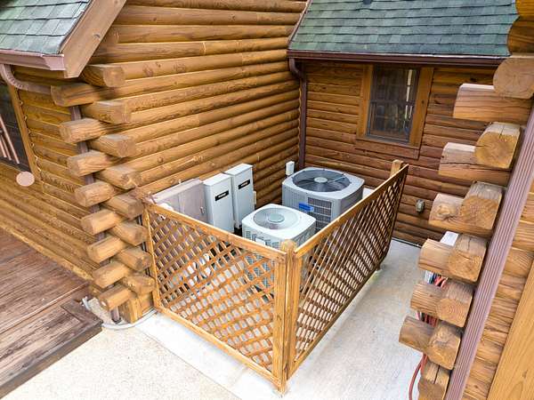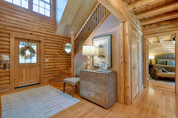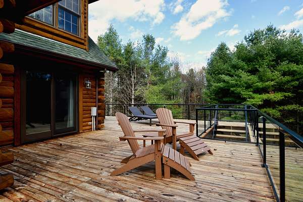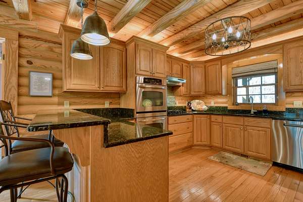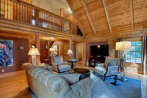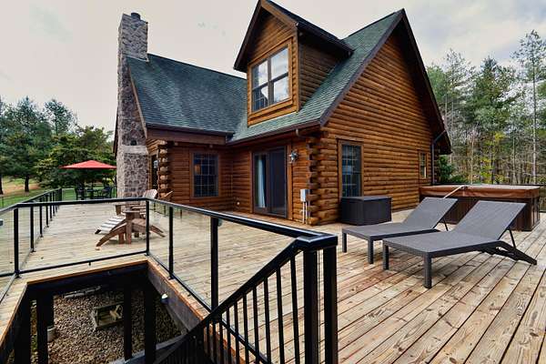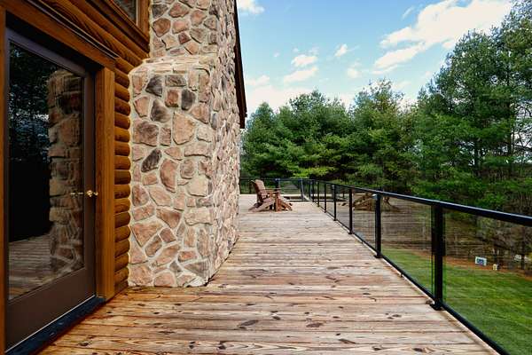 LIVE like you're on VACATION every day in this stunning 4-bedroom, 4-bath log home located just minutes from Town of Floyd! Thismeticulously built home features solid HW floors throughout w/ solid wood interior doors. A dramatic wall of windows fills the living room w/ naturallight, while 12,000 KW off-grid solar system efficiently powers most of home. Solar is located in the new, 2nd detached garage for additional space.The kitchen offers granite countertops, a walk-in pantry w/ breakfast bar. The dining area opens to spacious deck, also accessible from the living room& main-level primary suite w/ luxurious updated primary bathroom! The bonus room over garage includes full bath & separate entrance, perfect for 4th bedroom, guest suite, home office or Airbnb rental. The finished walk-out