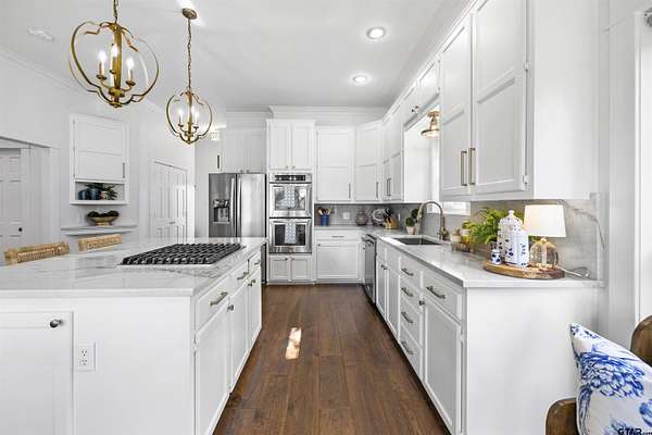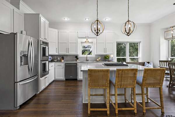 - Cooktop, Dishwasher, Double Oven, Garbage Disposer, Gas Cooktop, Microwave, Refrigerator, Washer