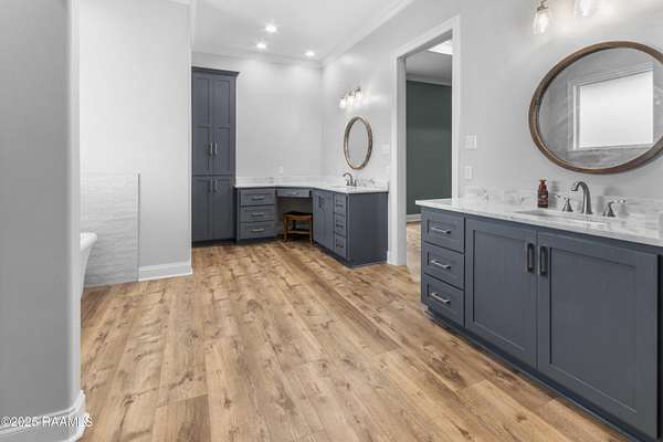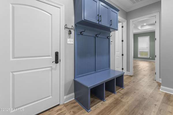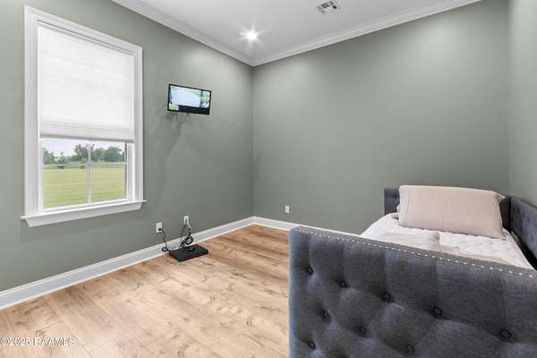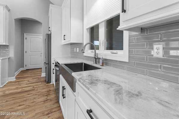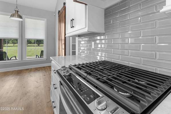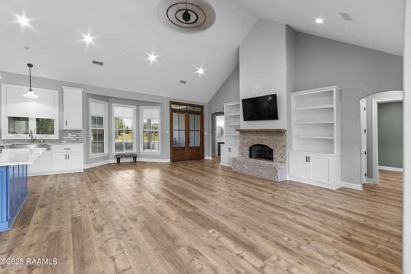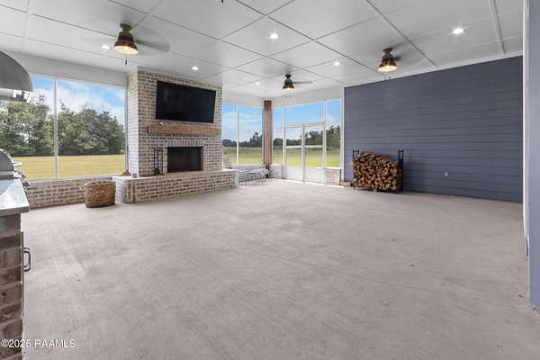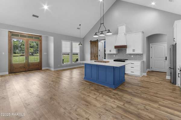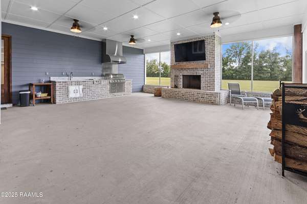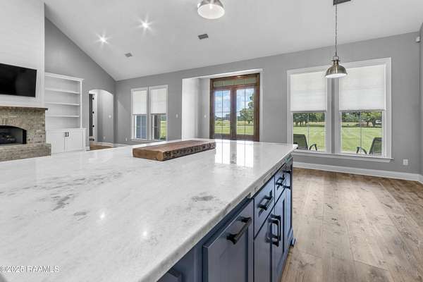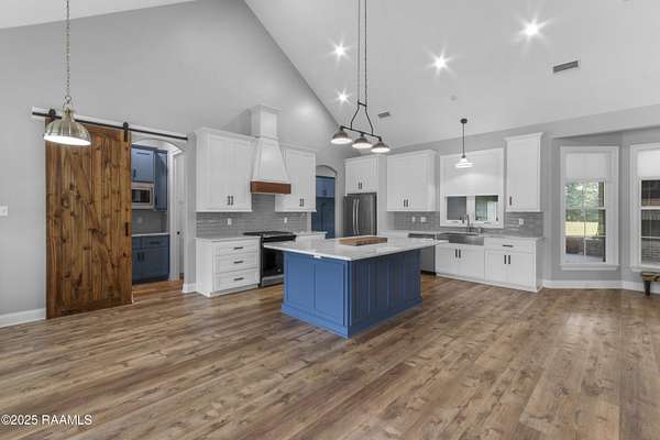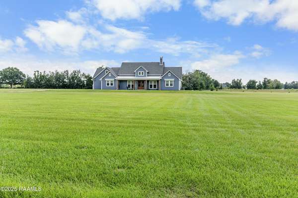 Step into your own modern farmhouse masterpiece. Crafted with precision, styled with intention, and set on nearly 5 acres of serene countryside just minutes from Lafayette. From the moment you arrive, the charm is undeniable. A Douglas Fir timber frame rests on an elevated 2.5-foot foundation for peace of mind, while the wide front porch invites you to slow down and take in the view. Inside, vaulted ceilings and 8-foot windows flood the open-concept living space with natural light, highlighting durable luxury plank flooring and custom woodwork throughout. The gourmet kitchen is a showstopper: bright white cabinetry, a bold blue island with quartz counters, farmhouse sink, subway tile backsplash, and dual walk-in pantries, complete with a sliding barn door and built-in coffee bar. The flow to the living room is effortless, with a brick fireplace and shiplap accents making the space as cozy as it is stylish. The primary suite feels like a retreat, featuring a spa-worthy bath with a frameless glass shower, pebble stone flooring, and freestanding tub, plus a massive walk-in closet that connects directly to the laundry room for convenience. Outside, the screened-in outdoor kitchen with fireplace is ready for crawfish boils and football season. With no flood zone, no flood insurance required, and ample acreage for a pool, workshop, or hobby farm, this property offers endless possibilities. Location perks: Just 6 minutes to Best Stop & Super 1, 18 minutes to Downtown Lafayette, and zoned for top-rated schools. This isn't just a home, it's a lifestyle upgrade waiting for you.