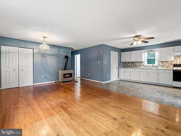 Experience the best of country living with this charming 2-Bedroom, 1-Bath Rancher nestled on 15 unrestricted acres in beautiful Frederick County, VA. Perfect as a full-time residence, weekend retreat, or potential farm, this property offers the peace and privacy of rural life while still being within easy reach of town conveniences. Step inside to find a cozy and move-in ready Home featuring warm hardwood floors and an open-concept Living Room and Kitchen that's ideal for modern living. The Kitchen features updated cabinetry, and a comfortable eat-in area perfect for morning coffee or casual meals. A gas stove in the Living Room provides both ambiance and efficient warmth on cool evenings, creating a welcoming space to relax and unwind. Down the hall you'll find 2 Bedrooms, and a Full Bath. Convenient in-unit laundry makes everyday living easy. Step outside, and enjoy the outdoors from the expansive front deck-perfect for relaxing, entertaining, or simply taking in the sounds of nature-or unwind on the side covered and screened-in porch. With plenty of open space on this 15 acre property, you can also enjoy your slice of fishing paradise! Hogue Creek runs through the property, and there's endless possibilities for recreation, farming, gardening, or even building additional structures. With no restrictions, the land offers true freedom to make it your own. This wonderful property is only 15 Minutes from Downtown Winchester, and within an hour from Northern VA. Whether you're looking for a full-time residence, weekend getaway, or investment opportunity, this home offers a rare blend of comfort, privacy, and natural beauty - don't miss your chance to enjoy the quiet beauty of country living in Frederick County. *Shared driveway with neighbor. Portion of 15 Acres closer to Hogue Creek is in a flood zone. The house is NOT in the flood zone. Buyer to do their own due diligence on flood information.*