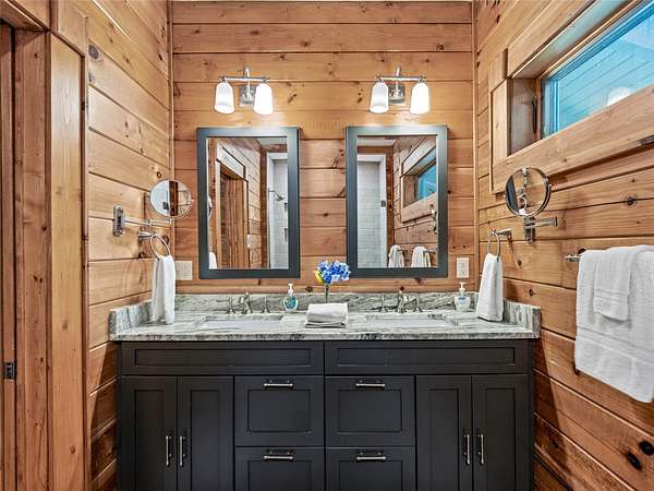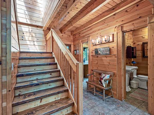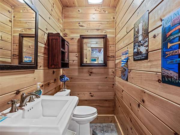 Welcome to 220 Circle Pines Dr., a beautiful log home nestled on a private 4.55 acres bordering Pisgah National Forest. Enjoy the peace and privacy of nature with rolling mountain views and the soothing sounds of the forest as your backdrop. The spacious wrap-around deck is perfect for relaxing or entertaining, offering a treehouse-like feel. Inside, you'll find rustic charm paired with thoughtful upgrades, including radiant heat floors in the updated primary bathroom, a tankless water heater, and refinished main level wood floors. The home also features a large unfinished basement with endless potential. Other improvements include a newer roof, new skylights, a powered retractable awning, and a partial home generator for added peace of mind. Located just 15 mins from downtown Brevard, this property offers the perfect blend of seclusion and convenience. Whether you're looking for a full-time residence or a mountain retreat, this home is ready to welcome you. Schedule a showing today!