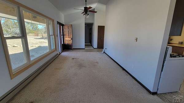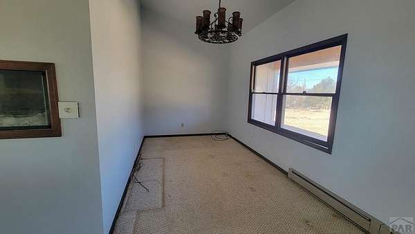 Incredible location to call your own awaits! Situated at the end of the road, behind fenced entryway and nestled up to hundreds of acres of State property. If privacy is what you desire, look no further! Over 12 acres of fenced property with wide open views of the South West Wet Mountain Range of the Rockies! Almost 2800 square feet of home sporting 3 bedrooms, 3 bathrooms and a full unfinished walk-out basement. Some newer casement windows, covered front patio, and oversized 2 car attached garage. 40' x 60' barn with corrals and some cross fencing. Large, irrigated pasture right off of the main ditch for easy water delivery. Off the beaten path yet conveniently close to State HWY 115 for easy commute to Colorado Springs or Pueblo. Perfect setup for the 4H family, horse enthusiast or person who just wants to live in peace with minimal distractions of the world!