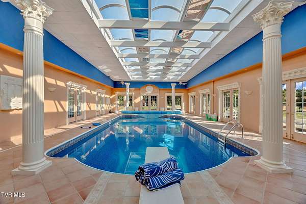 Wake up to peaceful views of Boone Lake, with mist rising off the water and mountains in the distance. This 6-acre property is more than a home, it's a private estate built for those who want space, luxury, and a connection to nature. Spend mornings fishing or sipping coffee on your dock with two boat slips, and afternoons lounging on the wraparound patio, grilling with friends, or swimming in the heated indoor pool, perfect for year-round enjoyment. Whether you're riding or relaxing, the wide-open landscape offers endless possibilities. Hosting is a breeze with outdoor spaces for dining, games, or gatherings. Inside, unwind by the fireplace or in the billiard room. Just minutes from I-26, this lakeside property combines nature, luxury, and the space to live your best life, where every day feels like a retreat.