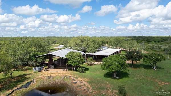 12-acre ranch featuring a 3-bedroom, 2-bath, 1,300 sqft home with dual covered patios and a bonus outdoor bar/saloon pavilion complete with a grill area. The property is equipped with water and electricity, plus two separate utility setups previously used for mobile homes--perfect for future rental income or additional structures. A mini resaca sits on-site with another located toward the back of the acreage, attracting abundant wildlife such as deer and javelinas, making it ideal for hunting. Agricultural animals are permitted, offering versatility for ranching, recreation, or investment. Sale is for land only; the existing mobile home will be removed prior to closing. However, the owner is willing to owner-finance the mobile home if the buyer prefers it to remain on the property.
