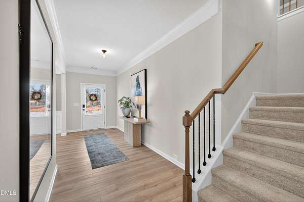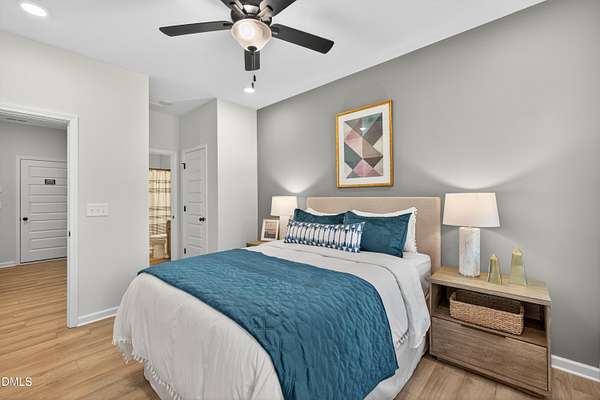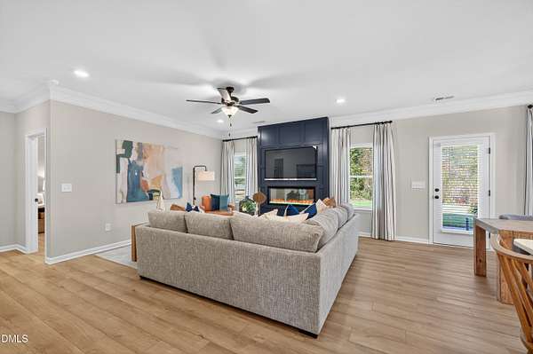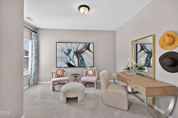Smith Douglas Homes proudly presents the James B plan at Liberty Creek. THIS HOME IS UNDER CONSTRUCTION WITH AN ESTIMATED COMPLETION DATE OF MAY 2026 Experience exceptional living in the thoughtfully designed James B floor plan, set on an expansive 2.192-acre homesite in the welcoming Liberty Creek community. Designed with both functionality and style in mind, the home offers abundant storage and flexible spaces, including a formal dining area, private study, and convenient mudroom. The open-concept main level is filled with natural light, featuring a spacious family room that flows effortlessly into the chef-inspired kitchen and breakfast area, with direct access to the outdoor patio. The kitchen is appointed with stainless steel appliances, granite countertops, 36-inch cabinetry, and a large center island upgraded with a farmhouse sink, ideal for everyday living and entertaining. Luxury vinyl plank flooring throughout the main floor adds durability and modern appeal. Upstairs, an oversized loft provides versatile living space perfect for relaxing or gathering. The owner's retreat serves as a true escape, complete with a separate sitting area for added privacy. The spa-style ensuite includes dual quartz vanities, a soaking garden tub, a walk-in shower, and an impressive walk-in closet with dual sections for optimal organization. Two additional bedrooms on the second floor share a Jack-and-Jill bathroom with a double vanity. Ideally located with convenient access to Raleigh, this home blends upscale finishes, thoughtful design, and a peaceful natural setting. Estimated completion is mid-May. Schedule your appointment today and make this exceptional home yours.