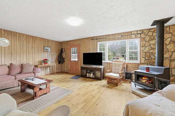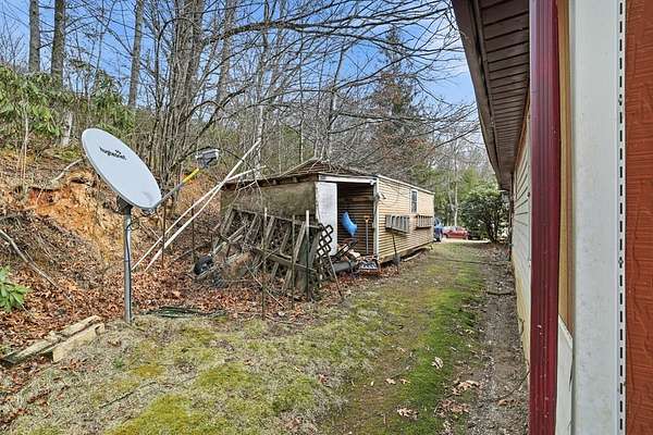 A rare mountain homestead with history, land, and views--Set on 3.16 unrestricted acres, this thoughtfully expanded home offers a lifestyle rooted in nature and possibility. Originally built in 1965, expanded in 1977, the property was once a beloved cut-flower farm, and that legacy lives on through its usable land, 2 seasonal creeks, 2-stall barn, and 2 addl outbuildings--ideal for homesteaders and gardeners. The front and side of the home are wrapped with decks and a covered porch, creating the perfect setting to take in mountain sunrises and sunsets that define Western NC living. Inside, features vintage wood paneling and a wood stove, offering warmth and character while framing mountain vistas year-round. The home includes 3 bedrooms and 2 full baths, with one bedroom currently used as a sewing room that can easily be converted back. A pantry space off the kitchen provides flexibility and abundant storage. Located just a few miles from Standing Indian, this property is for outdoor enthusiasts seeking usable acreage, and easy access to hiking, adventure, and mountain living. Unrestricted land, established structures, and a setting this special are increasingly hard to find.