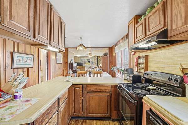 - Breakfast Bar, Ceiling Fans, Kitchen/Dining Room, Main Level Living, Pantry, Primary On Main Level, Primary W/Ensuite