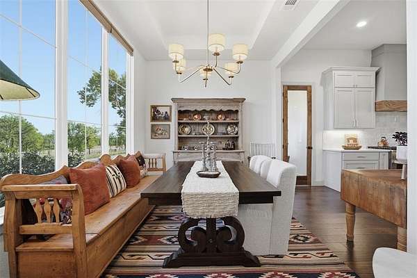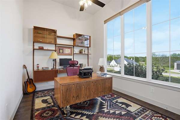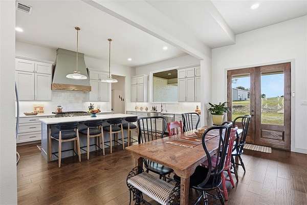 Set on just over 2 peaceful acres between Weatherford and Granbury, this beautifully designed 2023 modern farmhouse offers space, style, and flexibility for country living. The open concept layout seamlessly connects the living, dining, and kitchen areas, perfect for both everyday living and entertaining, while a dedicated office provides a quiet work-from-home option. A cozy fireplace anchors the living room, and the spacious primary suite features a soaking tub, separate shower, and generous walk-in closet. Upstairs, the fifth bedroom with a full bath could also serve as a game room or media room. Outside, enjoy wide open skies, visiting deer, and room to add a pool. A standout feature is the impressive 40x40 insulated and air-conditioned workshop with a premium modern garage door, bathroom, RV hookups, and patio, an ideal space for hobbies, projects, or equipment. With no HOA, horse-friendly acreage, and the Brazos River boat ramp just minutes away, this property offers the perfect blend of privacy, functionality, and country charm.
