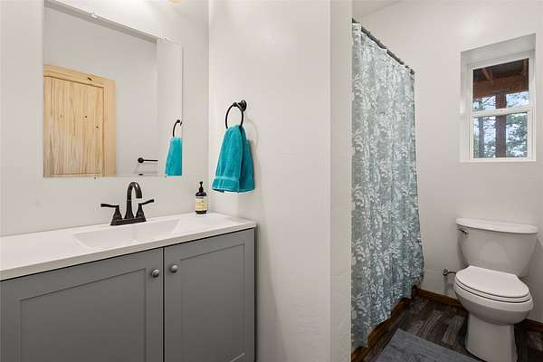 Seeking peace, privacy, and outdoor recreation? Don't miss this charming home nestled in the woods on 5 beautiful acres! With 4 bedrooms and 3 bathrooms, there's plenty of space to spread out and enjoy the quiet surroundings. The main level features a functional kitchen, a large pantry, and a center island offering generous counter space. Rustic charm throughout with knotty pine tongue-and-groove accents, metal wainscoting, vaulted ceilings, a cozy wood stove, and French doors that open to a large deck-perfect for entertaining or simply relaxing. The nearly finished walkout basement was built with quality in mind using insulated concrete forms. It offers two over sized bedrooms, a full bath, a spacious laundry area with plenty of storage, and a family room with French doors that leads outdoors. Located on a private gravel road just 14 miles from Kalispell and minutes from FH Stoltze Land, Smith Lake and Smith Lake Waterfowl Production Area for all your recreational activities.