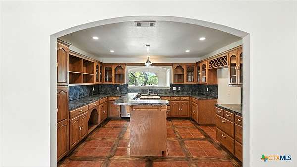 Welcome to this beautifully maintained Hill Country Haven on 7.66 Acres! This is a one-owner home in the heart of the Texas Hill Country. Offering 2,044 sq. ft. of comfortable living space, this 3-bedroom, 2-bath residence showcases pride of ownership throughout. Step inside to find a thoughtful split floor plan, freshly painted interior and exterior, and unique touches such as custom cabinetry and imported Mexican tile. The inviting living area is centered around a cozy wood-burning fireplace, creating the perfect gathering spot. Enjoy outdoor living at its finest with a spacious front porch and a back patio newley epoxied and a wooden pergola with bar and seating, ideal for relaxing or entertaining. A detached shop adds versatility-perfect for hobbies, storage, or workspace. Major updates provide peace of mind, including a new septic system in 2025, roof replaced in 2021, and A/C unit replaced in 2022. With solid updates to the essentials and timeless features throughout, it's the perfect canvas to make your own. Some photos have been virtually staged.