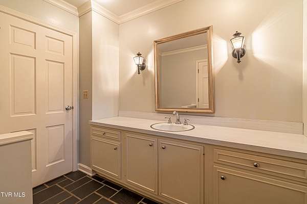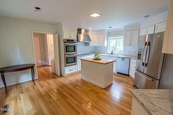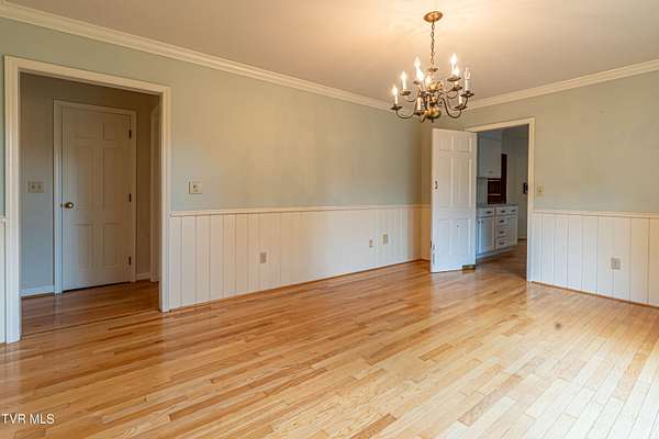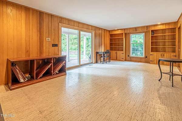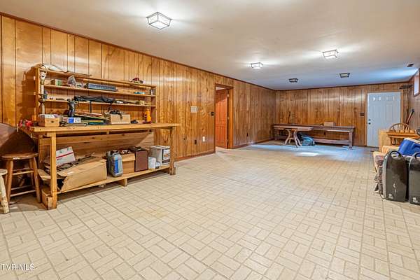 Set on a beautifully manicured 4-acre homesite with mountain and wooded views, this spacious 5-bedroom, 3.5-bath brick home offers over 3,500 square feet of refined living space plus a finished lower-level rec room. With thoughtful updates and timeless character, it's a standout in the Cedar Bluff market. Inside, the heart of the home is a remodeled kitchen featuring Carrara marble counters, a butcher block island, soft-close cabinetry, and an induction cooktop. The adjacent family room with rich wormy chestnut paneling, adding warmth and rustic elegance. Hardwood floors, crown molding, and wainscoting elevate the main level, which includes a formal living room with a fireplace, a dining room with a picture window, and a spacious primary bedroom with Bathroom. Upstairs, two additional bedrooms and a full bath offer flexible space for guests or hobbies. The mostly finished basement includes a large rec room with vinyl flooring and a third fireplace. Outside, enjoy a covered front porch, rear brick patio, and a flagstone walkway. A 2-car attached garage and oversized driveway provide ample parking. The property is fully equipped with an Invisible Fence(R) brand dog containment system around the perimeter-ideal for pet owners seeking peace of mind. With updated windows, newer water heaters, and a replaced heat pump system, this home blends comfort, quality, and convenience. Located minutes from Richlands' amenities, it's a rare find with space, privacy, and enduring appeal.