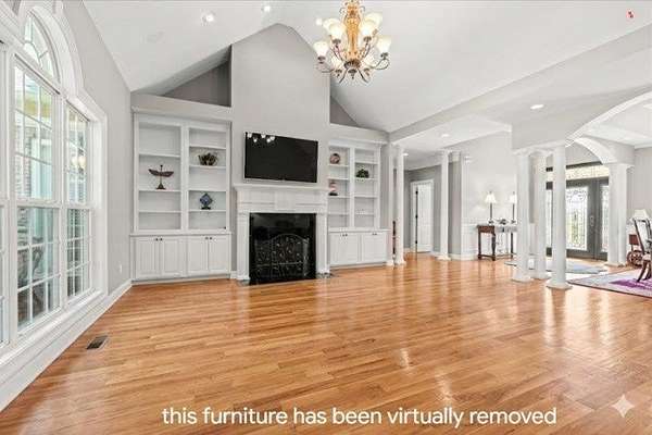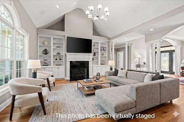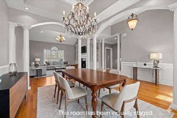 Stunning Southern Craftsman–Cape Cod style estate offering timeless charm and exceptional versatility. The main level features three bedrooms and two-and-a-half baths, including a spacious primary suite with a spa-like ensuite bath with tiled shower and soaking tub designed for relaxation. Enjoy an inviting family room with fireplace and built-ins, a chef's kitchen, formal dining room, and a cozy keeping room with its own fireplace. Upstairs offers an additional bedroom, full bath, and flexible loft space. A full unfinished basement and a floored attic provide excellent opportunities for future expansion. An oversized two-car garage and open acreage with space for livestock complete this beautiful property, blending refined living with room to grow.