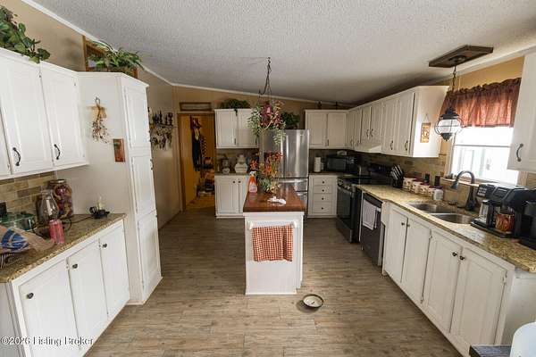 Must see! This spacious 3-bedroom, 3-bath modular home sits on a stunning large lot with park-like property, complete with mature trees Step into an inviting open layout featuring a spectacular white kitchen with ample cabinets, generous counter space, and a central island-perfect for entertaining and everyday living. The large living area boasts a beautiful fireplace, creating a cozy gathering spot year-round. The split floor plan ensures privacy, with a huge primary suite offering two full-sized bathrooms, a large walk-in closet, and plenty of space to relax. Additional highlights include a beautiful sunroom for year-round enjoyment, a large detached garage, and a convenient storage shed. Outside, discover your own private outdoor oasis: a large deck and refreshing pool, ideal for summer relaxation and entertaining amid the serene surroundings. Nestled in a quiet neighborhood with lots of room to spread out, this home exudes pride of ownership. Recent updates include a new sunroom, new roof, and new air conditioner unit/furnace for peace of mind. Don't miss this rare opportunityschedule your showing today!
