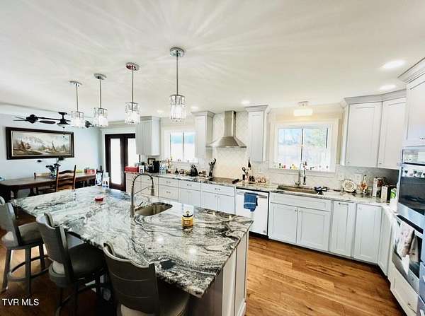MOTIVATED SELLERS!!! Welcome to your future mini farm and private oasis! This completely remodeled home features new wiring, plumbing, 3 bedrooms with 2 baths custom with heated porcelain tile floors, Bluetooth lighting and custom backlight mirrors. The nearly wraparound porch in the front boasts a custom wood ceiling with recessed lighting. The main entry features an open design straight to the gorgeous custom kitchen with granite countertops, new stainless appliances and a huge island for entertaining. The kitchen also features an eat in and a separate dining area. The living room features a custom bay window with a bench seat with built in storage. Down the hall you go past two bedrooms and the second bath into the master suite featuring a trey ceiling with custom trey lights. There is a large walk in closet with the master bath featuring double vanities and a custom walk in tile shower with a seat. The master also features a walkout to the porch overlooking the fiberglass saltwater heated pool with a Pentair heat pump..Latham fiberglass pool..Astoria 16 with Champagne Wall with built in seating and walk around ledge... 15'10'' x 40' with a built in hot tub and sun bathing pool lounge gently sloping to the deep end and comes with a 50 year shell warranty. The just over six acres also features its own spring fed water system, a separate garage, two separate block buildings and a huge pole barn all with concrete floors. There is also a silo and large level ground for your own garden or to fence in for your animals! Don't forget to enjoy the year round Mountain View's while enjoying the pool or hot tub! Book your showing today to view this custom home conveniently located near North Carolina, Johnson City, Kingsport, Bristol and Gatlinburg or Pigeon Forge. So many more amazing amenities to list so check them out in person!
