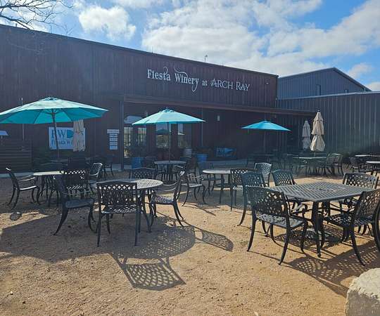 From downtown Fredericksburg, take US Hwy 290 East toward Johnson City. Pass the Arch Ray Restaurant/Winery and the RV park. When you see the tan wall, pass the first exit and take the second left into Arch Ray Resort. Enter through the gates, turn left at the first road, and follow around to Site 220.