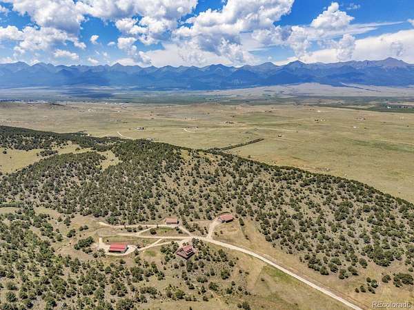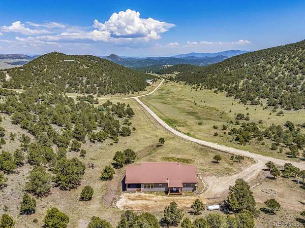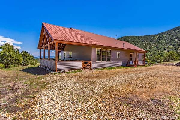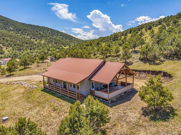 41.58 ACRES BORDERING BLM | 2050 SQ FT HOME | 1440 SQ FT BARN -- One-level living on 41.58 acres bordering BLM in Bull Domingo Ranch, just minutes from Westcliffe and Lake DeWeese. This 2,050 sq ft home offers wide-open space, stunning mountain views, and the peaceful setting the Wet Mountain Valley is known for. Inside, enjoy two spacious primary suites with 5-piece ensuite baths, vaulted ceilings, radiant in-floor heat, and a cozy pellet stove. Multiple walk-in closets provide ample storage. Outdoor living shines with a covered back deck and full-length front porch, perfect for taking in expansive views and Westcliffe's renowned Dark Skies. A 1,440 sq ft metal barn/shop offers excellent space for equipment, vehicles, or hobbies. Partially fenced with room for horses and direct access to recreation. Ideal for full-time living, a private retreat, or a multi-generational setup, this property offers the flexibility and space that are increasingly hard to find. With year-round access, nearby amenities, and endless outdoor recreation, it's a rare combination of privacy and convenience. Opportunities like this, acreage, views, and BLM access are limited in today's market. Pikes Peak Views!