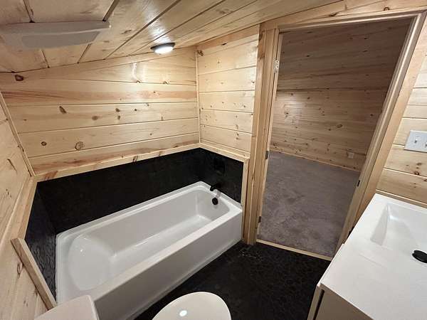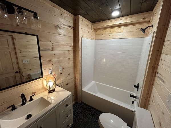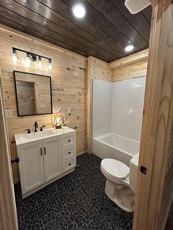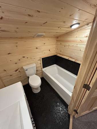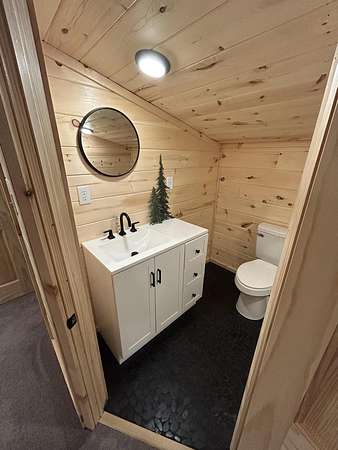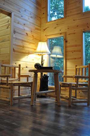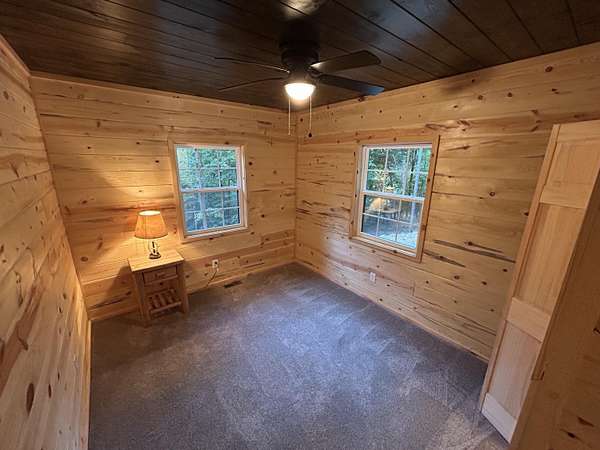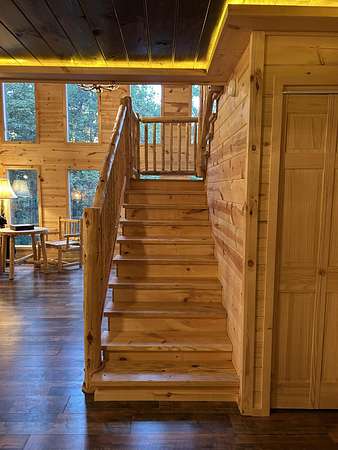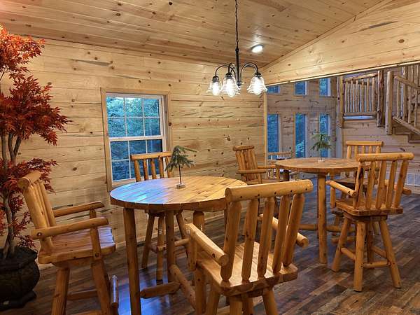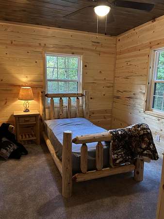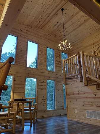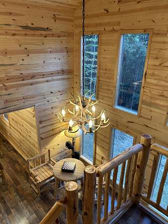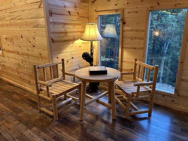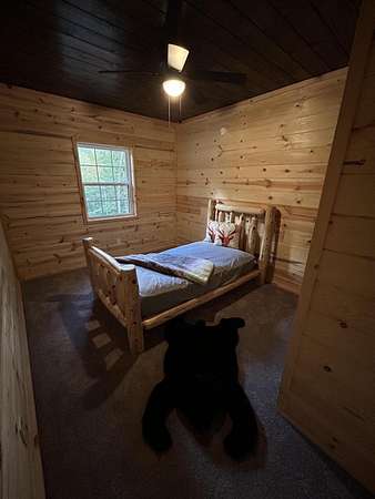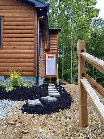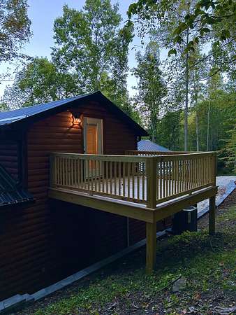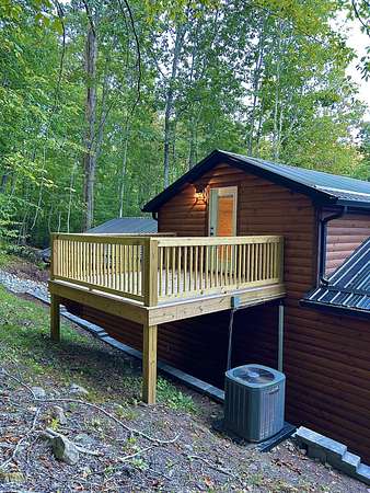 The address will take you to the end of Robs Mt. road. (Do not go to the end of the road.) After you go up a blacktop switchback, you'll see a gravel switchback road on the right with three mailboxes and a home for sale sign next to them, turn there and go to the third cabin on the left and you'll see a blue C. Roger Lewis for sale sign. Go up the hill and you've made it.