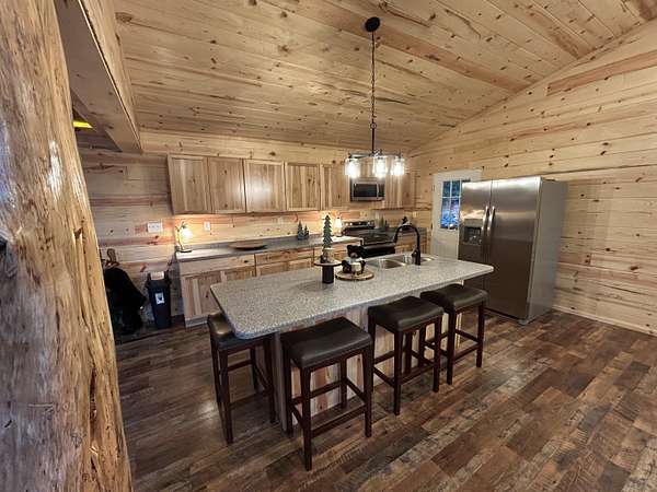 One of the most SCENIC properties in the Morehead area! Welcome to 220 Robs Mt. Rd in Clearfield KY, a property like no other with an authentic Kentucky landscape and a beautifully detailed 2025 custom built cabin style home. This new construction home sits on a secluded 3.98 acres and is located 15 minutes from downtown Morehead/MSU campus and 20 minutes from Cave Run Lake. The rear of the property is backed by towering cliffs that make a stunning view to sit on the deck and enjoy or can be can be used for sport such as climbing or repelling! This custom home includes 3 bedrooms, 2 full bathrooms, laundry room, mudroom, a large covered porch, a large deck, and beautiful outdoor lighting all around the home. The primary bedroom in the loft includes one of the full bathrooms, a walk-in closet, and a large deck. The home also includes a great room with tall ceilings to enjoy the view of hills, trees, and landscape of Kentucky! The scenery of this home also makes it a great candidate for Airbnb potential. This open-concept style home has the perfect level of coziness and serenity for everyone to enjoy. Call it home today! -This property is agent owned.