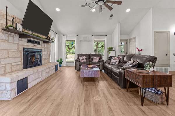 The property includes an existing remodeled residential 3 bedroom 2 bath home. With mature oak trees, a fenced area, and room to expand, the acreage provides an excellent opportunity for someone looking to build, develop, or establish a home-based business while maintaining a residence on-site.