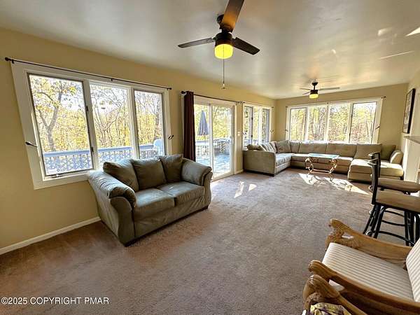 Quietly positioned at the end of a cul-de-sac road on 5.2 ACRES, this unique 2-bedroom, 2 bath, ranch residence has been remodeled on the interior, and the owner is working on stoning the front exterior, siding the remainder of the home, and replacing the rear/side deck! The interior has a vintage floorplan. The entrance foyer welcomes you and gives you three directions to head to. Starting on the immediate right you are greeted with an ample sized bedroom with separate entrance to the backyard, this transitions to the sunk in dining room, kitchen, and large rear living room with deck access and seasonal mountainside views. Working our way back through the kitchen which has been completely upgraded and has a stainless-steel appliance package, we find the main bathroom, primary bedroom, and primary bathroom with laundry closet. You are literally moments to route 80 and the NJ state line! No cats, 1 small dog under 50 lbs with an extra month security deposit, no exceptions. Owner is open to leaving the large sofa and TV in the living room. Owner will also be cutting the grass so all you have to do is enjoy the acreage with this one! Renters insurance is required.