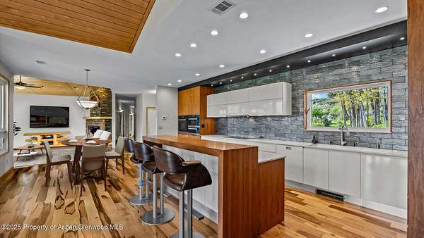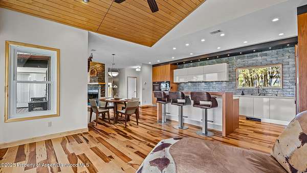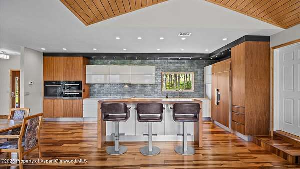 This stunning modern residence in Missouri Heights offers front-row seats to nature's finest performance with panoramic views of Mount Sopris, the Snowmass Village ski area, and the majestic Elk Mountain Range. Designed with both elegance and function in mind, the home features a gourmet kitchen outfitted with top-tier Miele appliances, clean architectural lines, and sunlit living spaces that flow effortlessly for entertaining or quiet retreats. Upon stepping into the gourmet kitchen, one will find exquisite finishes in the bi-fold aventos cabinets, quartz counters, Lemans corner pull-outs, Sub-zero refrigerator and drinks cooler and under counter lighting making your food look gorgeous. Preparing meals will be enhanced by the exquisite control an induction cooktop brings. Multiple ovens give options; does one choose the steam oven, the convection oven or the warming drawer? No need to choose when you have all three. Rolling shutters protect the home during mountain storms and allow for complete blackout when desired, making it ideal for second-home living or a serene escape. An oversized RV garage provides generous storage for all your Colorado lifestyle gear. The 1.6-acre lot offers room to breathe and a sense of privacy, with space to unwind or entertain against a backdrop of alpine beauty. Summer access to the communities private pool and pickleball/tennis court bring amenities that few Missouri Heights homes have access to. Whether it's snowmobiling and skiing in winter or mountain biking, hiking, and paddleboarding in summer, adventure awaits just minutes away on nearby Basalt Mountain. Beyond the property, enjoy the vibrant amenities of El Jebel including Whole Foods, boutique shopping, and live performances at TACAW. And when it's time for a night out or a day on the slopes, world-class dining, art, and skiing in Aspen are just up the road. This is refined mountain living with every comfort and a lifestyle that's second to none.
