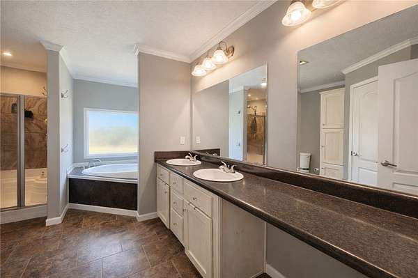 - Bath In Primary Bedroom, Bathtub, Dual Sinks, Garden Tub Roman Tub, Main Level Primary, Separate Shower