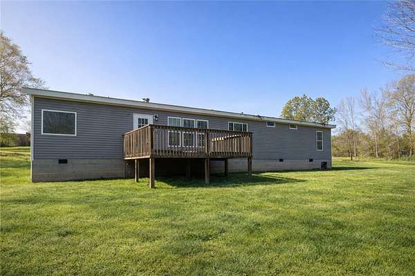 Tucked away on nearly 3 private acres just minutes from downtown Anderson, this spacious home offers the perfect blend of seclusion and convenience. Located off Middleton Church Road, the property features mixed trees, approximately 2 acres of pasture-like yard, and two outbuildings for added storage, hobbies, or workspace. This manufactured home sits on a foundation with crawl space and offers inviting front and back decks to enjoy the peaceful setting. Inside, you'll find a large kitchen with ample breakfast or dining area open to the living room with fireplace, plus a separate laundry room accented by barn doors. The primary suite features a charming shiplap bed alcove, garden tub, walk-in shower, double sinks, and generous vanity space. On the opposite side of the home, a hallway opens to an office area, 3 additional bedrooms, and a spacious hall bath with double sinks and shower. All bedrooms offer ample closet space. Brand new HVAC system installed, and the septic was serviced this year. Priced to sell and full of potential inside and out.