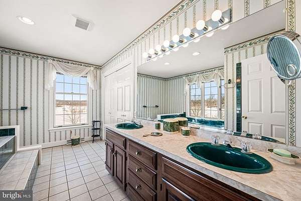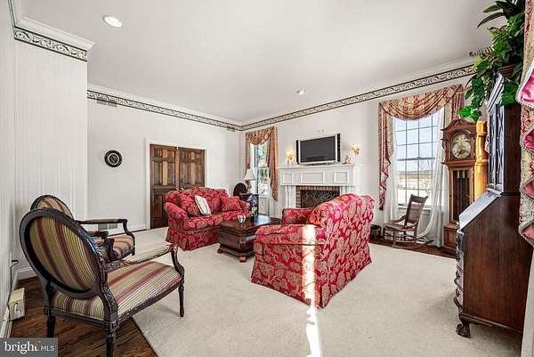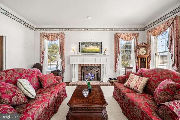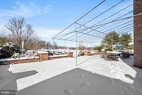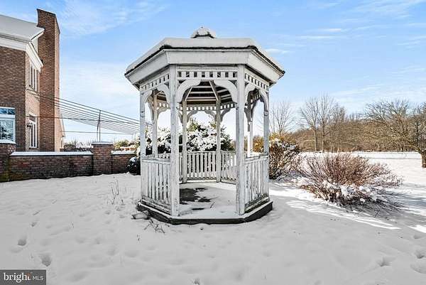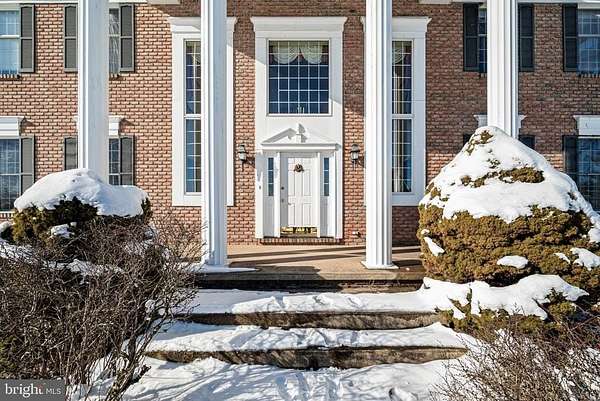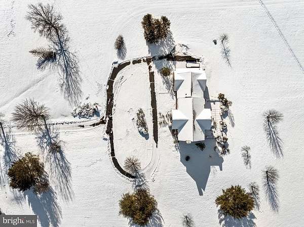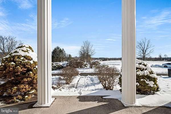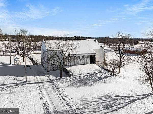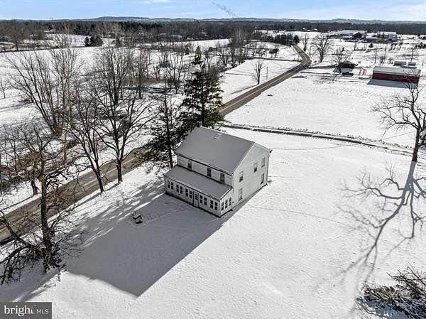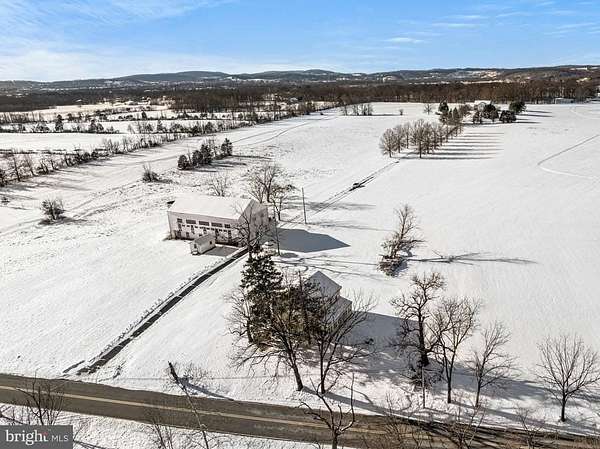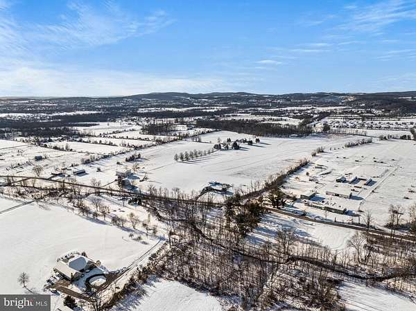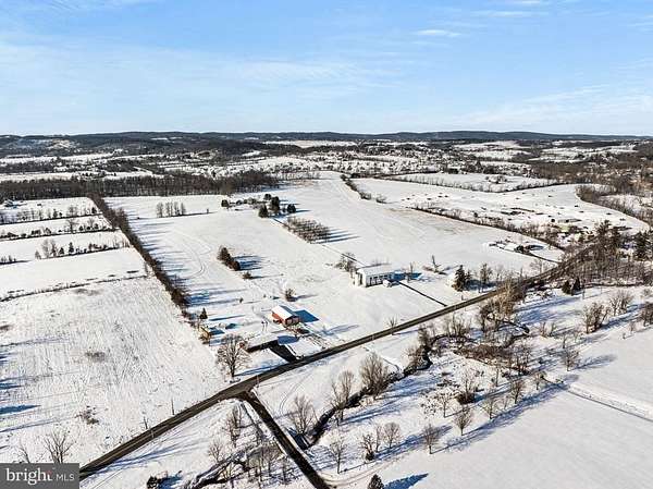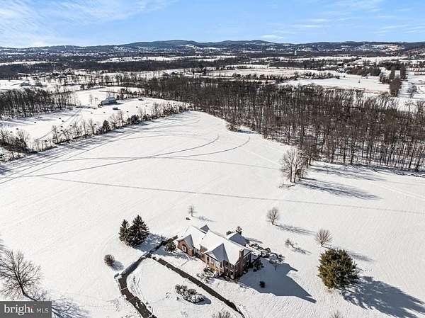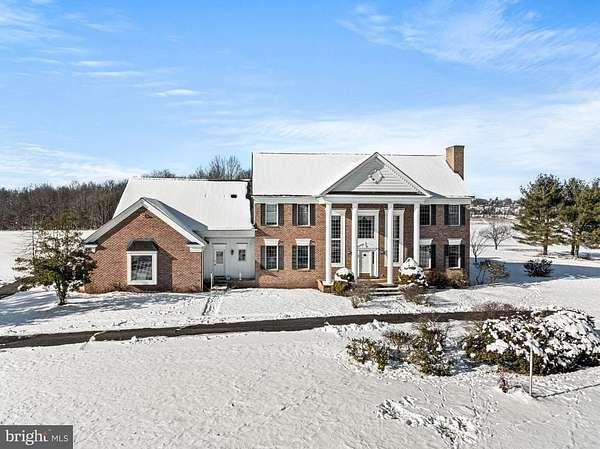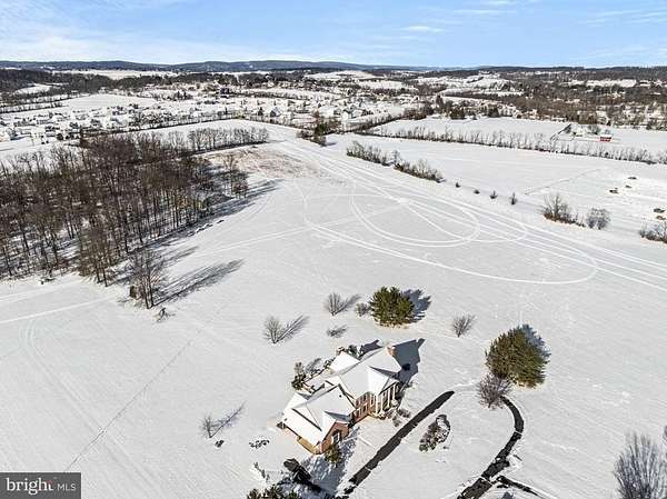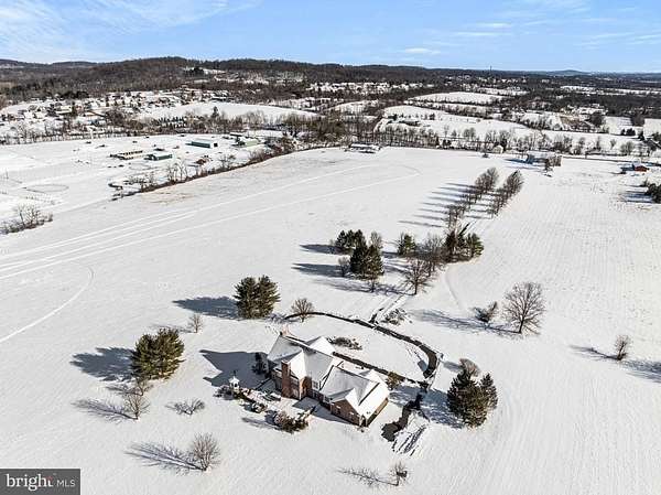 Crosswinds Field Farm is an 81-acre estate with scenic vistas of surrounding country lands. A tree-lined driveway leads to the stately Georgian colonial styled house, Harold Landis custom built circa 1992, appointed with an elegant portico and cross-gabled roof design. This sublime premises offers a guest house, a handsome stone two-story bank barn, and a 2,600-foot length grass private FAA state licensed airstrip with 5,000 sq. ft. metal hangar. The handsome brick house opens to a beautifully fenestrated 2-story entrance hall with circular stairway, tiled floor, and magnificent chandelier. The main level has a flowing design connecting the family room with brick fireplace & wet bar, gourmet kitchen with island counter & pantry, formal dining room, and living room with ornate wood mantel fireplace. The kitchen's sliding doors and family room's French doors open to the spacious terrace with canvas awning. The second floor consists of the main bedroom with fireplace & private 4-piece bathroom, 2 more bedrooms with en-suite bathrooms, a 4th bedroom and hall bathroom. Hard wood floors and custom details are found throughout the house. The finished basement has 2 stairwells; one leads to the 4-car attached garage. The tranquil Schlegel Creek runs through the property. and is equestrian suitable. Located in a rural area of Montgomery County it is convenient to major commutable roads. The property is currently in Act #319, 'Clean & Green', and located in an Agricultural Security Area.