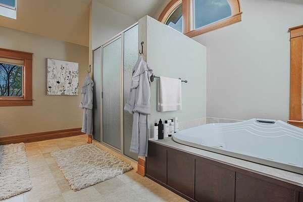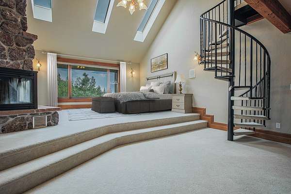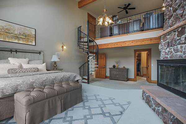 - Fireplace, Home Theater, Main Level Primary, Vaulted Ceilings, Walk In Closets