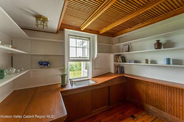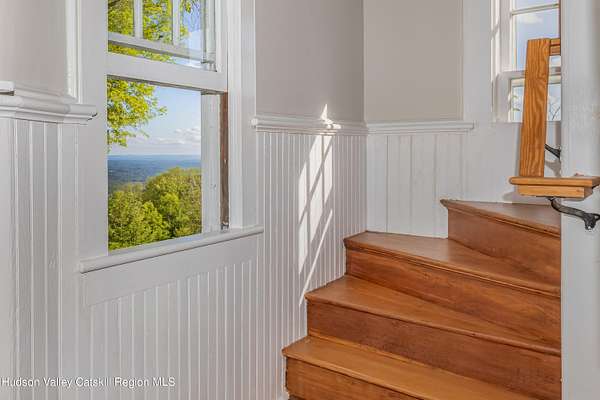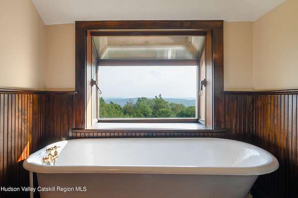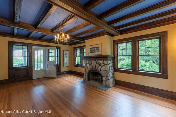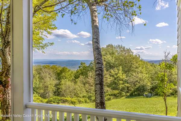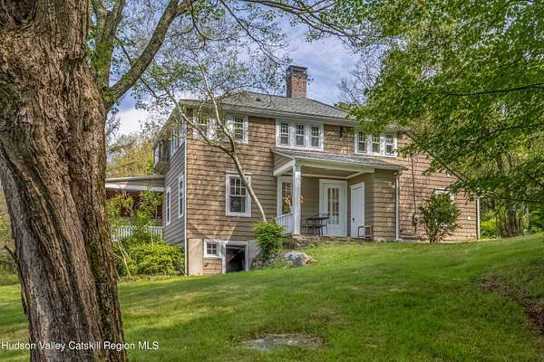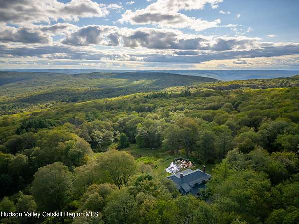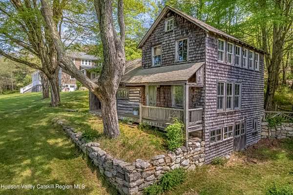 Once part of George Inness Jr's iconic 350-acre Chetolah estate. This 5 bedroom, 2.5 bath historic Cragsmoor home includes 3 lots totaling over 34 acres of pristine land with a mix of woodlands, original trails, meadow, pond, stream, expansive views and bordering the 5000-acre Sam's Point preserve for easy hiking enjoyment. An additional cabin is located to the east of the house that has tremendous potential as a guest house or studio once restored. Steeped in deep nature and history, the home was named Breezy Brow and built for Inness's daughter and maintains many of the original circa 1901 details; coffered ceilings, rich woodwork, 2 fireplaces and multiple covered porches to enjoy the views and nature. Special pigments have been used for the interior of the home. The quaint mountaintop community of Cragsmoor is home to many lovely historic homes, but very few have the level of privacy and lot size this property offers, coupled with adjacent preserve lands to ensure its ongoing serenity and beauty. The additional lots could be very scenic sites for other homes. One hour and 22-minute drive to the GW bridge makes this a comfortable weekend escape.