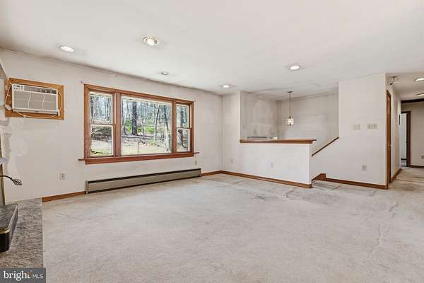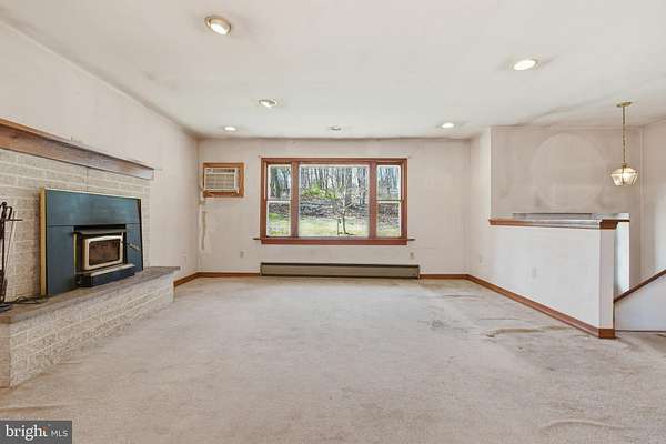 Attention handy home buyers! Are you looking to earn a little bit of sweat equity? Come see this 4 bedroom, 2.5 bath Bi-Level home in Palisades School district on just over 5 acres of wooded ground. You'll be nestled in on a hill down a long, secluded driveway, giving you an "in the woods" feel. Enjoy being surrounded by nature yet just a short commute to everything the area has to offer. The upper level of this home includes: 3 bedrooms (the primary bedroom has its own private bath), a hall bathroom, as well as an eat-in kitchen, dining room and living room. There are sliding doors off the dining room and the main bedroom that lead out to the huge 47x16 covered deck, which offers loads of space to entertain, relax, and take in the views and the natural backdrop that is your own slice of Upper Bucks heaven. Downstairs there is a large family room with fireplace, powder room, 4th bedroom, laundry room, and access into the attached garage which also has a workshop space. This home is being sold "as is" and offers loads of potential. Add value as you update this space and make it your own. Come visit 2200 Chestnut Road and find your way home!